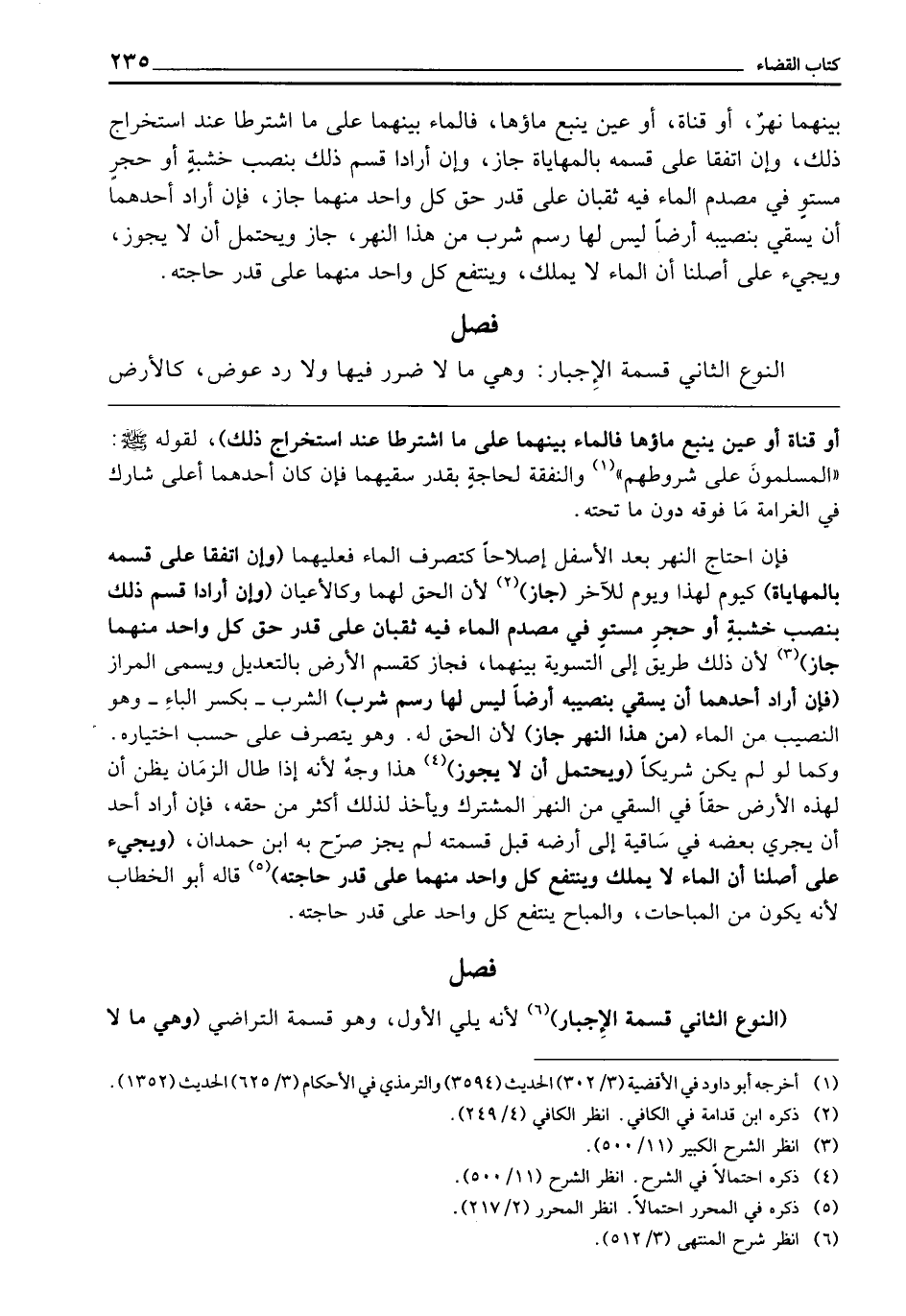 فَصْلٌ النَّوْعُ الثَّانِي: قِسْمَةُ الْإِجْبَارِ: وَهِيَ مَا لَا ضَرَرَ فِيهَا، وَلَا رَدَّ عِوَضٍ، كَالْأَرْضِ