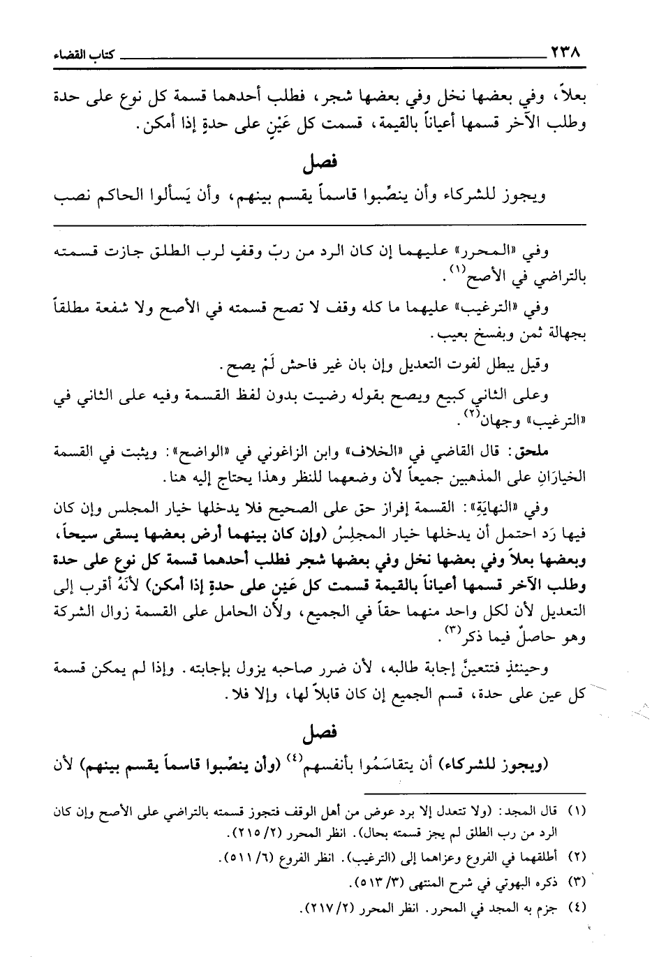ـــــــــــــــــــــــــــــQوَفِي الْمُحَرَّرِ عَلَيْهِمَا: إِنْ كَانَ الرَّدُّ مِنْ رَبِّ وَقْفٍ لِرَبِّ الطِّلْقِ، جَازَتْ قِسْمَتُهُ بِالتَّرَاضِي فِي الْأَصَحِّ.