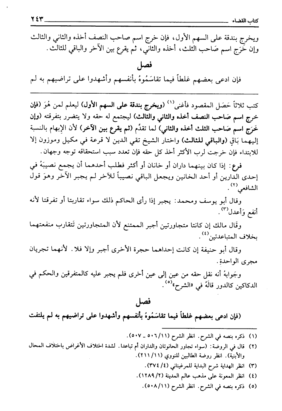 (فَإِنِ ادَّعَى بَعْضُهُمْ غَلَطًا فِيمَا تَقَاسَمُوهُ بِأَنْفُسِهِمْ وَأَشْهَدُوا عَلَى تَرَاضِيهِمْ بِهِ، لَمْ يُلْتَفَتْ