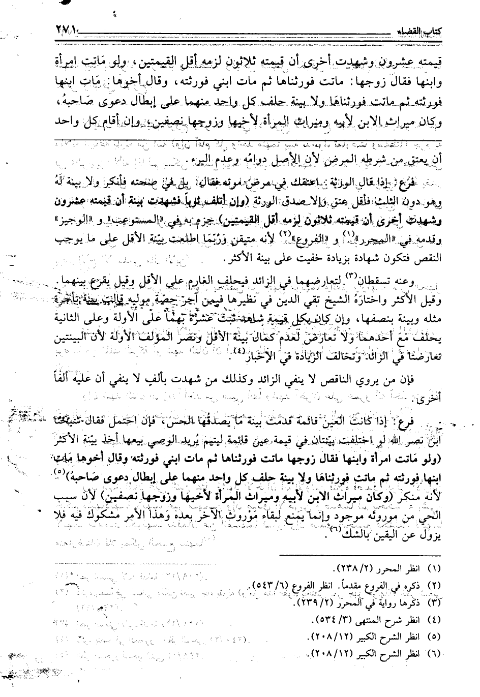 فَرْعٌ: إِذَا كَانَتِ الْعَيْنُ قَائِمَةً قُدِّمَتْ بَيِّنَةُ مَا يُصَدِّقُهَا الْحِسُّ، فَإِنِ احْتَمَلَ، فَقَالَ شَيْخُنَا ابْنُ نَصْرِ اللَّهِ: لَوِ اخْتَلَفَتْ بَيِّنَتَانِ فِي قِيمَةِ عَيْنٍ قَائِمَةٍ لِيَتِيمٍ يُرِيدُ الْوَصِيُّ بَيْعَهَا، أُخِذَ بَيِّنَةُ الْأَكْثَرِ (ولَوْ مَاتَتِ امْرَأَةٌ وَابْنُهَا، فَقَالَ زَوْجُهَا: مَاتَتْ فَوَرِثْنَاهَا، ثُمَّ مَاتَ ابْنِي فَوَرِثْتُهُ، وَقَالَ أَخُوهَا: مَاتَ ابْنُهَا فَوَرِثَتْهُ، ثُمَّ مَاتَتْ فَوَرِثْنَاهَا، وَلَا بَيِّنَةَ، حَلَفَ كُلُّ وَاحِدٍ مِنْهُمَا عَلَى إِبْطَالِ دَعْوَى صَاحِبِهِ) لِأَنَّهُ مُنْكِرٌ (وَكَانَ مِيرَاثُ الِابْنِ لِأَبِيهِ، وَمِيرَاثُ الْمَرْأَةِ لِأَخِيهَا وَزَوْجِهَا نِصْفَيْنِ) لِأَنَّ سَبَبَ الحي مَنْ مَوْرُوثه مَوْجُودٌ، وَإِنَّمَا يُمْنَعُ لِبَقَاءِ مَوْرُوثِ الْآخَرِ بَعْدَهُ، وَهَذَا الْأَمْرُ مَشْكُوكٌ فِيهِ، فَلَا يَزُولُ عَنِ الْيَقِينِ بِالشَّكِّ.