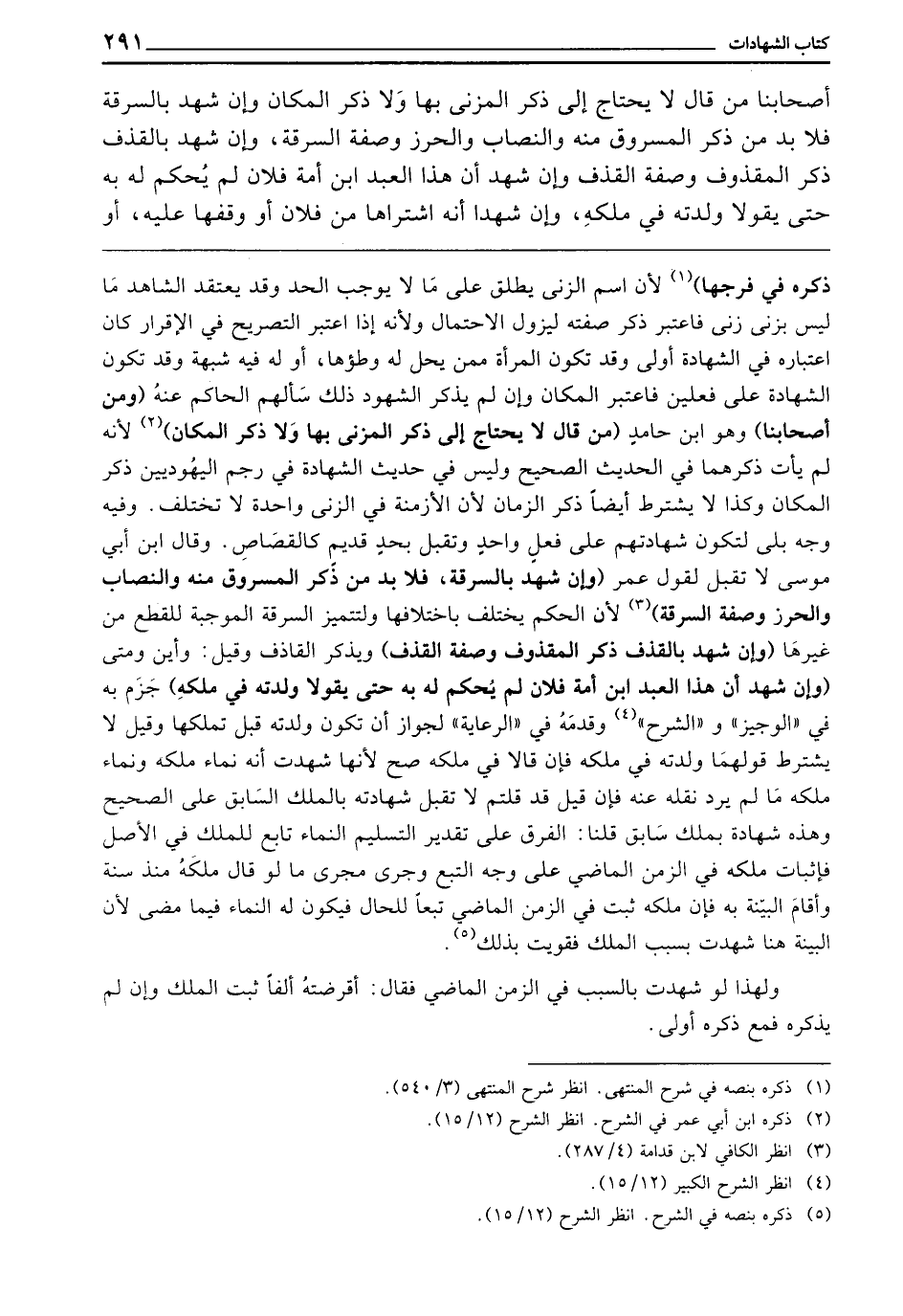 أَصْحَابِنَا مَنْ قَالَ: لَا يَحْتَاجُ إِلَى ذِكْرِ الْمُزْنَى بِهَا وَلَا ذِكْرِ الْمَكَانِ، وإن شَهِدَ بِالسَّرِقَةِ فَلَا بُدَّ مِنْ ذِكْرِ الْمَسْرُوقِ مِنْهُ، وَالنِّصَابِ وَالْحِرْزِ، وَصِفَةِ السَّرِقَةِ، وَإِنْ شَهِدَ بِالْقَذْفِ ذَكَرَ الْمَقْذُوفَ وَصِفَةَ الْقَذْفِ، وَإِنْ شَهِدَ أَنَّ هَذَا الْعَبْدَ ابْنُ أَمَةِ فُلَانٍ لَمْ يُحْكَمْ لَهُ بِهِ حَتَّى يَقُولَا: وَلَدَتْهُ فِي مِلْكِهِ، وَإِنْ شَهِدَا أَنَّهُ اشْتَرَاهَا مِنْ فُلَانٍ أَوْ وَقَفَهَا عَلَيْهِ، أَوْ