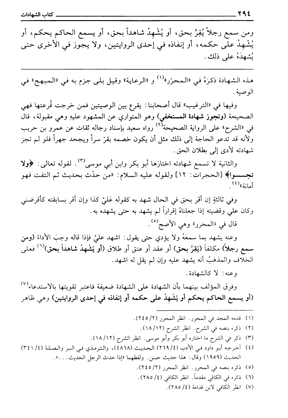 ـــــــــــــــــــــــــــــQهَذِهِ الشَّهَادَةُ، ذَكَرَهُ فِي الْمُحَرَّرِ وَالرِّعَايَةِ، وَقِيلَ: بَلَى، جَزَمَ بِهِ فِي الْمُبْهِجِ فِي الْوَصِيَّةِ.