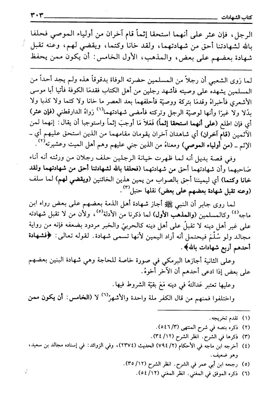 ـــــــــــــــــــــــــــــQلِمَا رَوَى الشَّعْبِيُّ أَنَّ رَجُلًا مِنَ الْمُسْلِمِينَ حَضَرَتْهُ الْوَفَاةُ بِدَقْوَقَا هَذِهِ، وَلَمْ يَجِدْ أَحَدًا مِنَ الْمُسْلِمِينَ يُشْهِدُهُ عَلَى وَصِيَّتِهِ، فَأَشْهَدَ رَجُلَيْنِ مِنْ أَهْلِ الْكِتَابِ، فَقَدِمَا الْكُوفَةَ فَأَتَيَا أَبَا مُوسَى الْأَشْعَرِيِّ فَأَخْبَرَاهُ وَقَدِمَا بِتَرِكَةٍ وَوَصِيَّةٍ، فَأَحْلَفَهُمَا بَعْدَ الْعَصْرِ مَا خَانَا وَلَا كَتَمَا وَلَا كَذِبَا وَلَا بَدَّلَا وَلَا غَيَّرَا، وَأَنَّهَا لَوَصِيَّةُ الرَّجُلِ وَتَرِكَتُهُ، فَأَمْضَى شَهَادَتَهُمَا. رَوَاهُ الدَّارَقُطْنِيُّ (فَإِنْ عُثِرَ) ، أَيْ: فَإِنِ اطَّلَعَ (عَلَى أَنَّهُمَا اسْتَحَقَّا إِثْمًا) فَعَلَا مَا أَوْجَبَ إِثْمًا، وَاسْتَوْجَبَا أَنْ يُقَالَ: إِنَّهُمَا لِمَنِ الْآثِمِينَ (قَامَ آخَرَانِ) أَيْ: شَاهِدَانِ آخَرَانِ يَقُومَانِ مَقَامَهُمَا مِنَ الَّذِينَ اسْتَحَقَّ عَلَيْهِمْ، أَيِ: الْإِثْمُ، (مِنْ أَوْلِيَاءِ الْمُوصِي) وَمَعْنَاهُ مِنَ الَّذِينَ جُنِيَ عَلَيْهِمْ، وَهُمْ أَهْلُ الْمَيِّتِ وَعَشِيرَتُهُ.