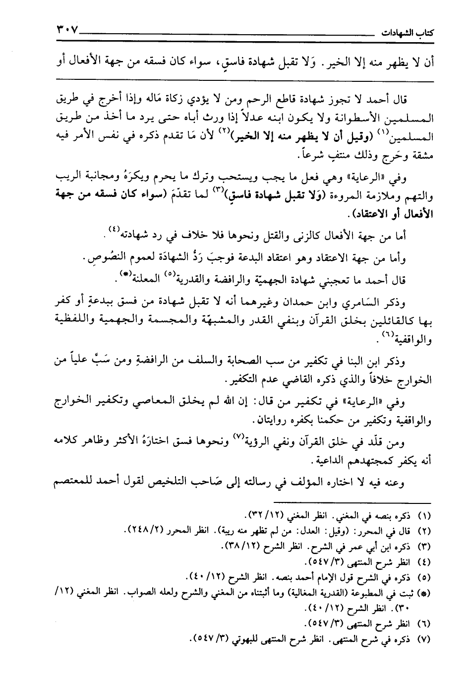 قَالَ أَحْمَدُ: مَا تُعْجِبُنِي شَهَادَةُ الْجَهْمِيَّةِ وَالرَّافِضَةِ وَالْقَدَرِيَّةِ المعلنة.