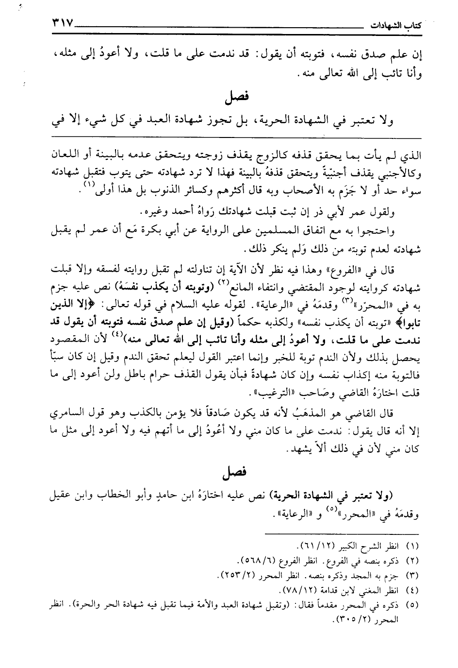 (وَلَا تُعْتَبَرُ فِي الشَّهَادَةِ الْحُرِّيَّةُ) نَصَّ عَلَيْهِ، اخْتَارَهُ ابْنُ حَامِدٍ وَأَبُو الْخَطَّابِ وَابْنُ عَقِيلٍ، وَقَدَّمَهُ فِي الْمُحَرَّرِ وَالرِّعَايَةِ.