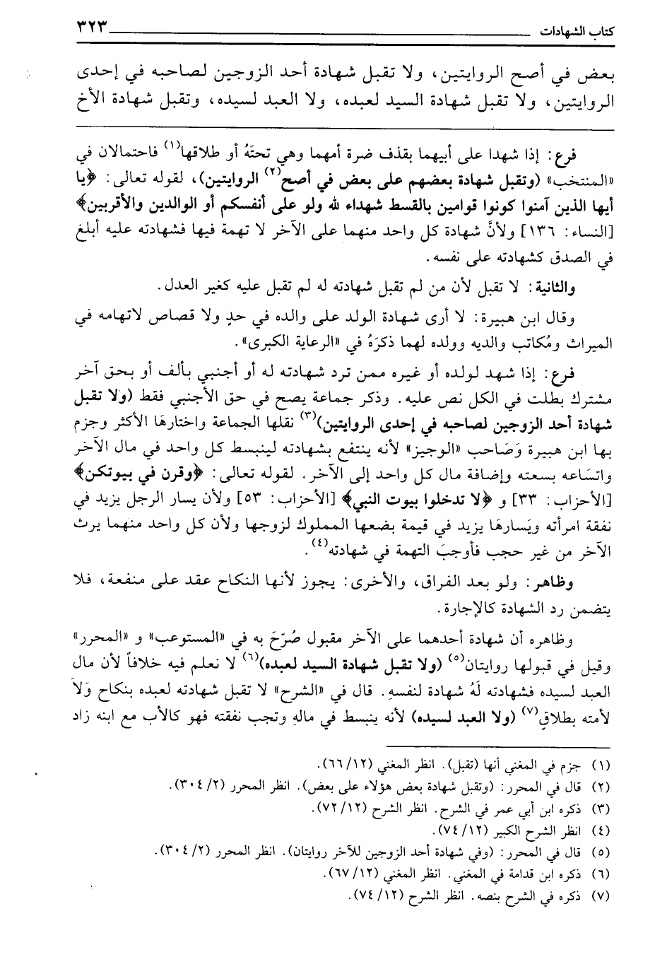 بَعْضٍ، فِي أَصَحِّ الرِّوَايَتَيْنِ، وَلَا تُقْبَلُ شَهَادَةُ أَحَدِ الزَّوْجَيْنِ لِصَاحِبِهِ فِي إِحْدَى الرِّوَايَتَيْنِ، وَلَا تُقَبَلُ شَهَادَةُ السَّيِّدِ لِعَبْدِهِ، وَلَا الْعَبْدِ لِسَيِّدِهِ، وَتُقْبَلُ شَهَادَةُ الْأَخِ