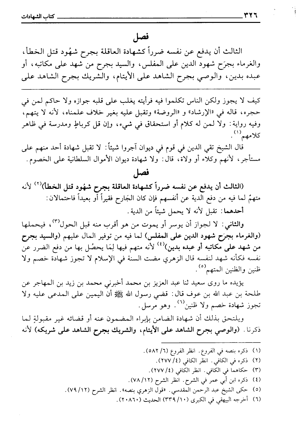 الثَّالِثٌ: أَنْ يَدْفَعَ عَنْ نَفْسِهِ ضَرَرًا، كَشَهَادَةِ الْعَاقِلَةِ بِجُرْحِ شُهُودِ قَتْلِ الْخَطَأِ، وَالْغُرَمَاءِ بِجُرْحِ شُهُودِ الدَّيْنِ عَلَى الْمُفْلِسِ، وَالسَّيِّدِ بِجُرْحِ مَنْ شَهِدَ عَلَى مُكَاتَبِهِ أَوْ عَبْدِهِ بِدَيْنٍ، وَالْوَصِيِّ بِجُرْحِ الشَّاهِدِ عَلَى الْأَيْتَامِ، وَالشَّرِيكِ بِجُرْحِ الشَّاهِدِ عَلَى