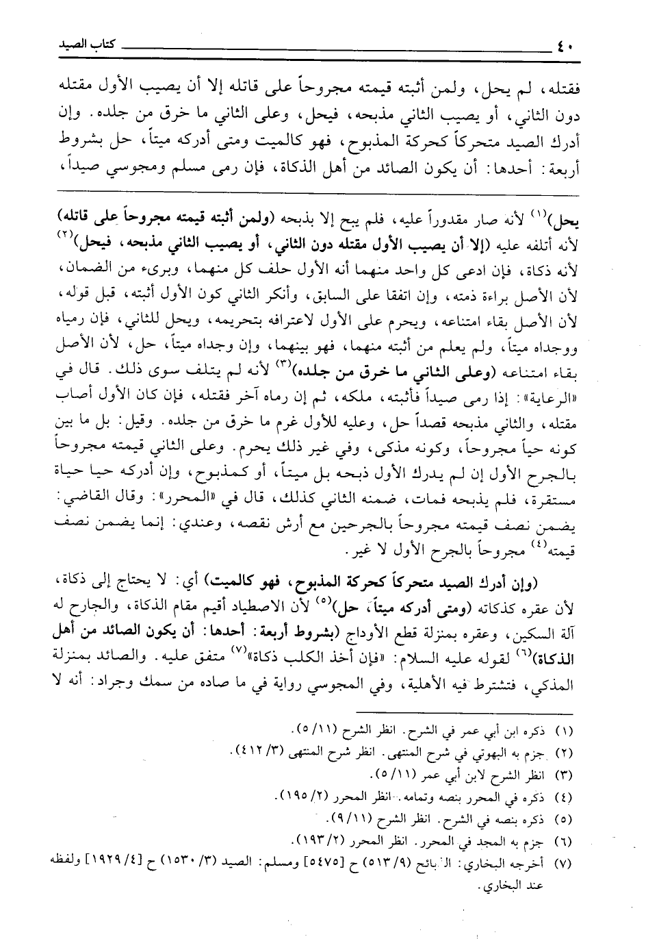 ـــــــــــــــــــــــــــــQيَحِلَّ) لِأَنَّهُ صَارَ مَقْدُورًا عَلَيْهِ، فَلَمْ يُبَحْ إِلَّا بِذَبْحِهِ، (وَلِمَنْ أَثْبَتَهُ قِيمَتُهُ مَجْرُوحًا عَلَى قَاتِلِهِ) لِأَنَّهُ أَتْلَفَهُ عَلَيْهِ، (إِلَّا أَنْ يُصِيبَ الْأَوَّلُ مَقْتَلَهُ دُونَ الثَّانِي، أَوْ يُصِيبَ الثَّانِي مَذْبَحَهُ فَيَحِلَّ) لِأَنَّهُ ذَكَاةٌ، فَإِنِ ادَّعَى كُلُّ وَاحِدٍ مِنْهُمَا أَنَّهُ الْأَوَّلُ حَلَفَ كُلٌّ مِنْهُمَا، وَبَرِئَ مِنَ الضَّمَانِ، لِأَنَّ الْأَصْلَ بَرَاءَةُ ذِمَّتِهِ وإن اتفقا عَلَى السَّابِقِ، وَأَنْكَرَ الثَّانِي كَوْنَ الْأَوَّلِ أَثْبَتَهُ قَبْلَ قَوْلِهِ، لِأَنَّ الْأَصْلَ بَقَاءُ امْتِنَاعِهِ، وَيَحْرُمُ عَلَى الْأَوَّلِ لِاعْتِرَافِهِ بِتَحْرِيمِهِ، وَيَحِلُّ لِلثَّانِي، فَإِنْ رَمَيَاهُ وَوَجَدَاهُ مَيِّتًا، وَلَمْ يُعْلَمْ مَنْ أَثْبَتَهُ مِنْهُمَا، فَهُوَ بَيْنُهُمَا، وَإِنْ وَجَدَاهُ مَيِّتًا حَلَّ، لِأَنَّ الْأَصْلَ بَقَاءُ امْتِنَاعِهِ، (وَعَلَى الثَّانِي مَا خَرَقَ مِنْ جِلْدِهِ) لِأَنَّهُ لَمْ يُتْلِفْ سِوَى ذَلِكَ، قَالَ فِي الرِّعَايَةِ: إِذَا رَمَى صَيْدًا فَأَثْبَتَهُ مَلَكَهُ، ثُمَّ إِنْ رَمَاهُ آخَرُ فَقَتَلَهُ، فَإِنْ كَانَ الْأَوَّلُ أَصَابَ مَقْتَلَهُ، وَالثَّانِي مَذْبَحَهُ قَصْدًا حَلَّ، وَعَلَيْهِ لِلْأَوَّلِ غُرْمُ مَا خَرَقَ مِنْ جِلْدِهِ، وَقِيلَ: بَلْ مَا بَيْنَ كَوْنِهِ حَيًّا مَجْرُوحًا وَكَوْنِهِ مُذَكًّى، وَفِي غَيْرِ ذَلِكَ يَحْرُمُ، وَعَلَى الثَّانِي قِيمَتُهُ مَجْرُوحًا بِالْجُرْحِ الْأَوَّلِ، إِنْ لَمْ يُدْرِكِ الْأَوَّلُ ذَبْحَهُ بَلْ مَيِّتًا، أَوْ كَمَذْبُوحٍ، وَإِنْ أَدْرَكَهُ حَيًّا حَيَاةً مُسْتَقِرَّةً فَلَمْ يَذْبَحْهُ فَمَاتَ ضَمِنَهُ الثَّانِي كَذَلِكَ، قَالَ فِي الْمُحَرَّرِ، وَقَالَ الْقَاضِي: يَضْمَنُ نِصْفَ قِيمَتِهِ مَجْرُوحًا بِالْجُرْحَيْنِ مَعَ أَرْشِ نَقْصِهِ، وَعِنْدِي: إِنَّمَا يَضْمَنُ نِصْفَ قِيمَتِهِ مَجْرُوحًا بِالْجُرْحِ الْأَوَّلِ.