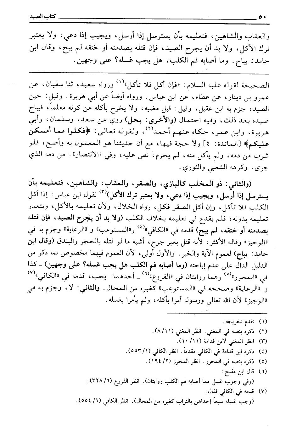 وَالْعُقَابِ وَالشَّاهِينِ، فَتَعْلِيمُهُ بِأَنْ يَسْتَرْسِلَ إِذَا أُرْسِلَ، وَيُجِيبَ إِذَا دُعِيَ، وَلَا يُعْتَبَرَ تَرْكُ الْأَكْلِ، وَلَا بُدَّ أَنْ يَجْرَحَ الصَّيْدَ، فَإِنْ قَتَلَهُ بِصَدْمَتِهِ أَوْ خَنَقَهُ لَمْ يُبَحْ، وَقَالَ ابْنُ حَامِدٍ: يُبَاحُ. وَمَا أَصَابَهُ فَمُ الْكَلْبِ هَلْ يَجِبُ غَسْلُهُ؟ عَلَى وَجْهَيْنِ.