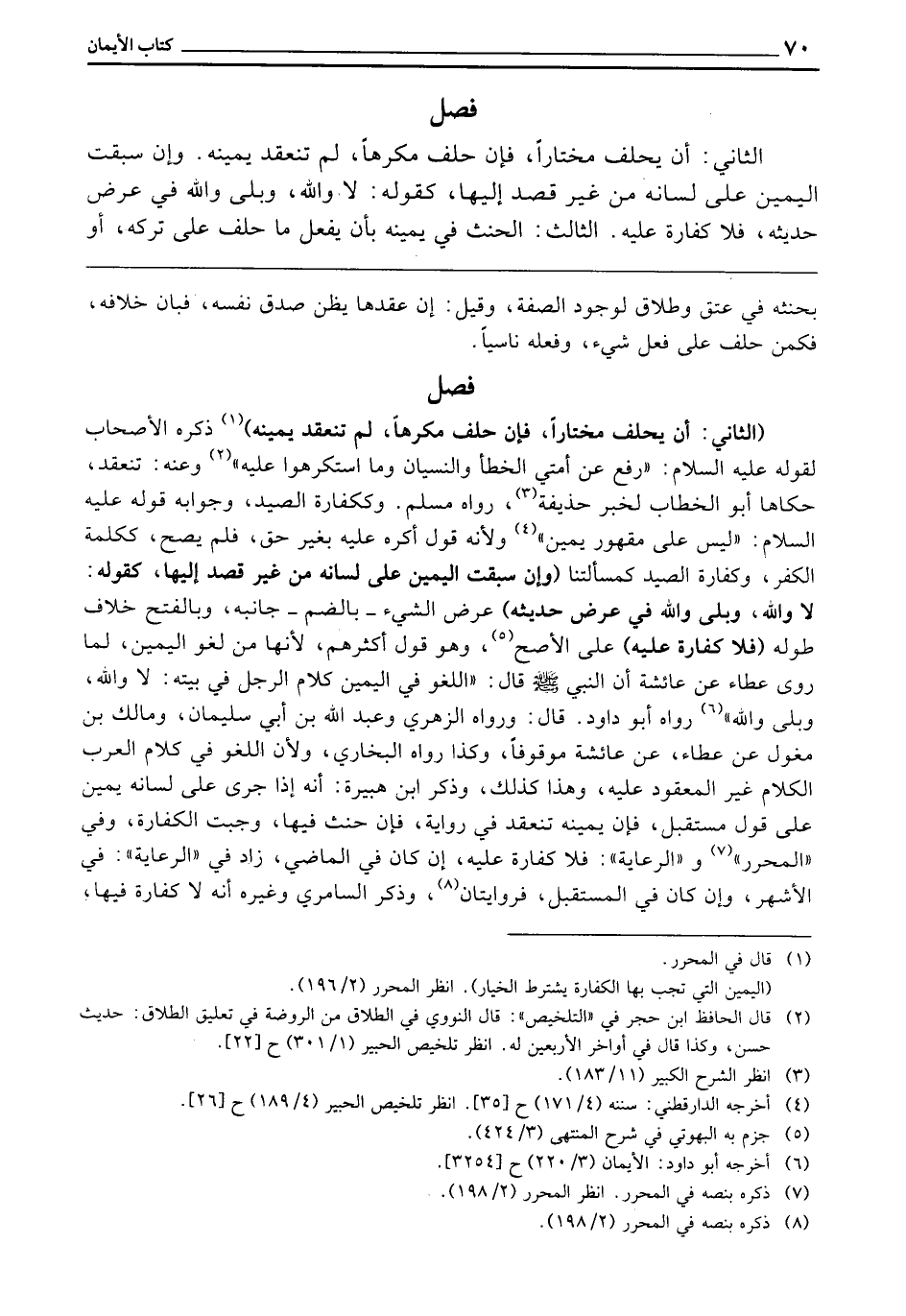 فَصْلٌ الثَّانِي: أَنْ يَحْلِفَ مُخْتَارًا، فَإِنْ حَلَفَ مُكْرَهًا لَمْ تَنْعَقِدْ يَمِينُهُ، وَإِنْ سَبَقَتِ الْيَمِينُ عَلَى لِسَانِهِ مِنْ غَيْرِ قَصْدٍ إِلَيْهَا، كَقَوْلِهِ: لَا وَاللَّهِ، وَبَلَى وَاللَّهِ، فِي عَرْضِ حَدِيثِهِ، فَلَا كَفَّارَةَ عَلَيْهِ.