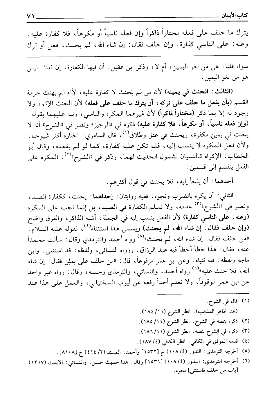 الثَّانِي: أَنْ يُكْرَهَ بِالضَّرْبِ وَنَحْوِهِ، فَفِيهِ رِوَايَتَانِ: إِحْدَاهُمَا: يَحْنَثُ، كَكَفَّارَةِ الصَّيْدِ، وَنَصَرَ فِي الشَّرْحِ عَدَمَهُ، وَلَا نُسَلِّمُ الْكَفَّارَةَ فِي الصَّيْدِ، بَلْ إِنَّمَا تَجِبُ عَلَى الْمُكْرَهِ، (وَعَنْهُ: عَلَى النَّاسِي كَفَّارَةٌ) لِأَنَّ الْفِعْلَ يُنْسَبُ إِلَيْهِ فِي الْجُمْلَةِ، أَشْبَهَ الذَّاكِرَ، وَالْفَرْقُ وَاضِحٌ، (وَإِنْ حَلَفَ، فَقَالَ: إِنْ شَاءَ اللَّهُ، لَمْ يَحْنَثْ) وَيُسَمَّى هَذَا اسْتِثْنَاءٌ، لِقَوْلِهِ - عَلَيْهِ السَّلَامُ -: «مَنْ حَلَفَ فَقَالَ: إِنْ شَاءَ اللَّهُ، لَمْ يَحْنَثْ» . رَوَاهُ أَحْمَدُ وَالتِّرْمِذِيُّ، وَقَالَ: سَأَلْتُ مُحَمَّدًا عَنْهُ، فَقَالَ: هَذَا خَطَأٌ أَخْطَأَ فِيهِ عَبْدُ الرَّزَّاقِ، وَرَوَاهُ النَّسَائِيُّ، وَلَفْظُهُ: قَدِ اسْتَثْنَى، وَابْنُ مَاجَهْ، وَلَفْظُهُ: فَلَهُ ثُنْيَاهُ، وَعَنِ ابْنِ عُمَرَ مَرْفُوعًا، قَالَ: «مَنْ حَلَفَ عَلَى يَمِينٍ، فَقَالَ: إِنْ شَاءَ اللَّهُ، فَلَا حِنْثَ عَلَيْهِ» . رَوَاهُ أَحْمَدُ وَالنَّسَائِيُّ وَالتِّرْمِذِيُّ وَحَسَّنَهُ، وَقَالَ: رواه غَيْرُ وَاحِدٍ عَنِ ابْنِ عُمَرَ مَوْقُوفًا، وَلَا نَعْلَمُ أَحَدًا رَفَعَهُ عَنْ أَيُّوبَ السِّخْتِيَانِيِّ، وَالْعَمَلُ عَلَى هَذَا عِنْدَ