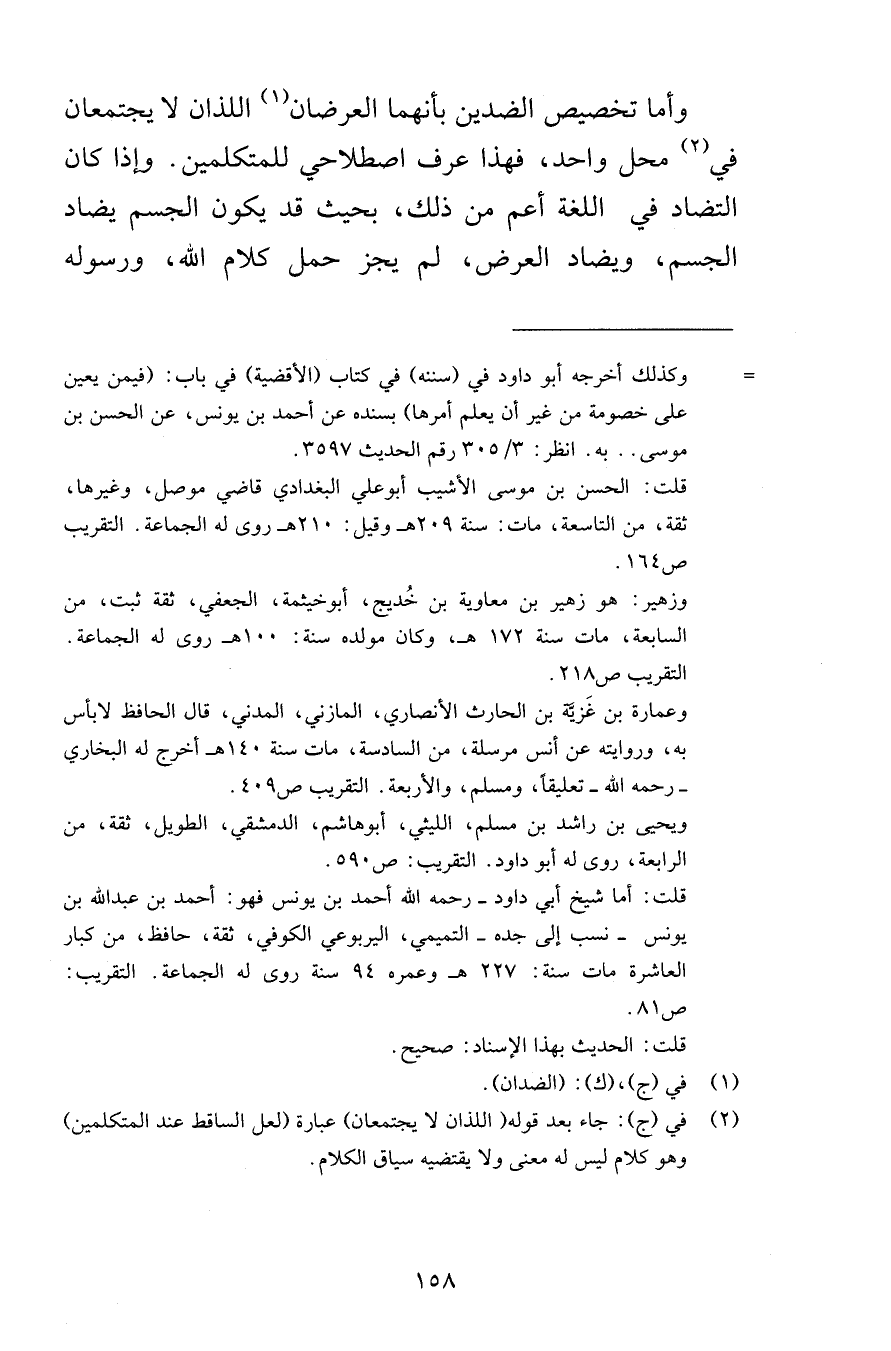 وأما تخصيص الضدين بأنهما العرضان اللذان لا يجتمعان في محل واحد فهذا عرف اصطلاحي للمتكلمين وإذا كان التضاد في اللغة أعم من ذلك بحيث قد يكون الجسم يضاد الجسم ويضاد العرض لم يجز حمل كلام الله ورسوله