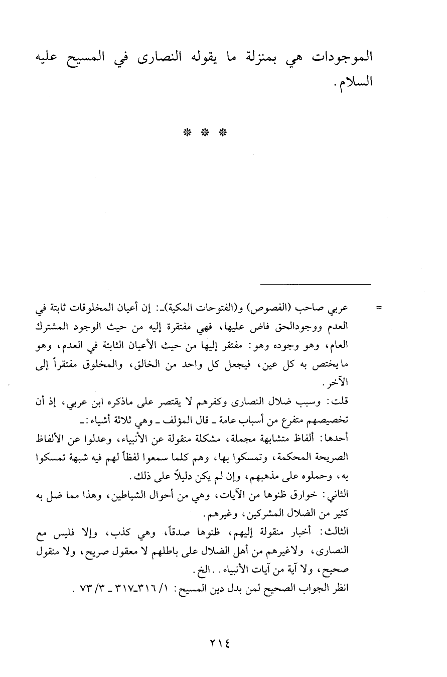 الموجودات هي بمنزلة ما يقوله النصارى في المسيح عليه السلام