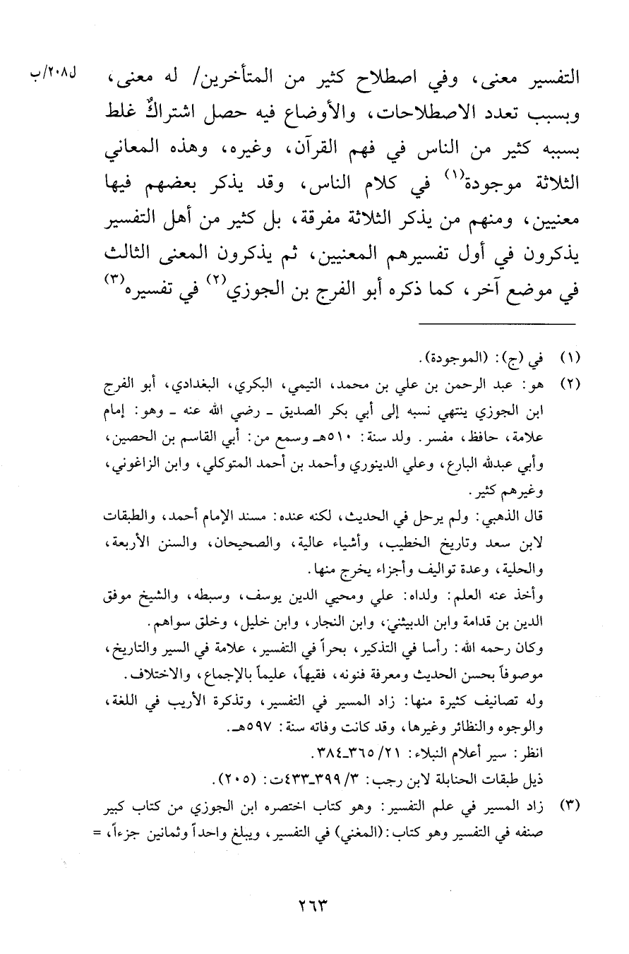 التفسير معنى وفي اصطلاح كثير من المتأخرين له معنى وبسبب تعدد الاصطلاحات والأوضاع فيه حصل اشتراكٌ غلط بسببه كثير من الناس في فهم القرآن وغيره وهذه المعاني الثلاثة الموجودة في كلام الناس وقد يذكر بعضهم فيها معنيين ومنهم من يذكر الثلاثة مفرقة بل كثير من أهل التفسير يذكرون في أول تفسيرهم المعنيين ثم يذكرون المعنى الثالث في موضع آخر كما ذكره أبو الفرج بن الجوزي في تفسيره