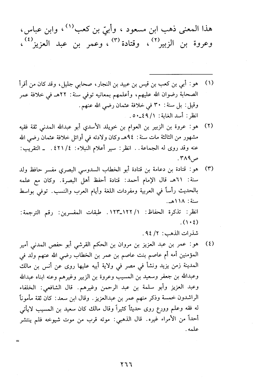 هذا المعنى ذهب ابن مسعود وأبيّ بن كعب وابن عباس وعروة بن الزبير وقتادة وعمر بن عبد العزيز