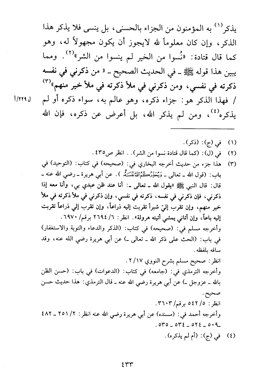 يذكر به المؤمنون من الجزاء بالحسنى بل ينسى فلا يذكر هذا الذكر وإن كان معلوماً لله لا يجوز أن يكون مجهولاً له وهو كما قال قتادة نُسوا من الخير لم ينسوا من الشر ومما يبين هذا قوله صلى الله عليه وسلم في الحديث الصحيح من ذكرني في نفسه ذكرته في نفسي ومن ذكرني في ملأ ذكرته في ملأ خير منهم فهذا الذكر هو جزاء ذكره وهو عالم به سواء ذكره أو لم يذكره ومن لم يذكر الله بل أعرض عن ذكره فإن الله