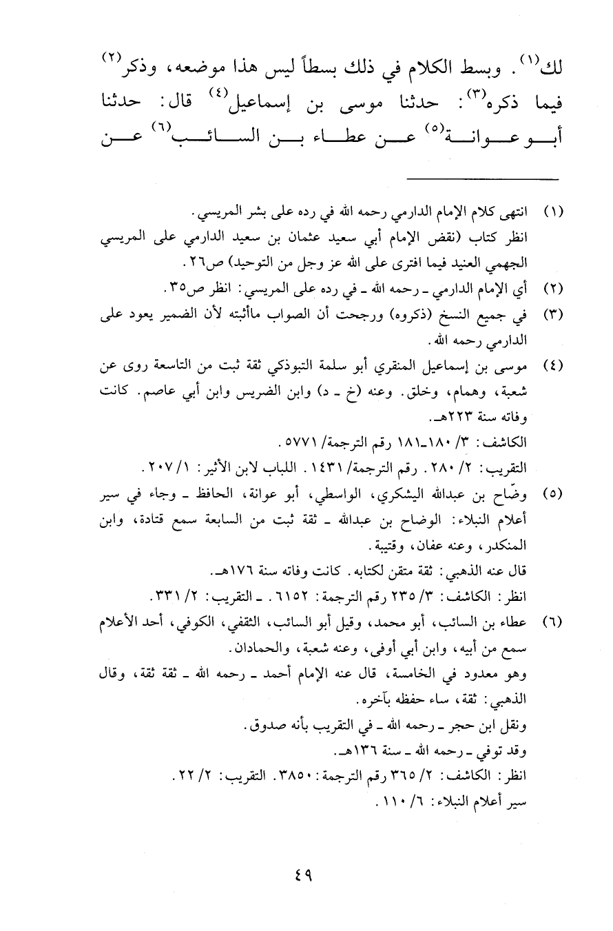 لك وبسط الكلام في ذلك بسطاً ليس هذا موضعه وذكر فيما ذكره حدثنا موسى بن إسماعيل قال حدثنا أبو عوانة عن عطاء بن السائب عن