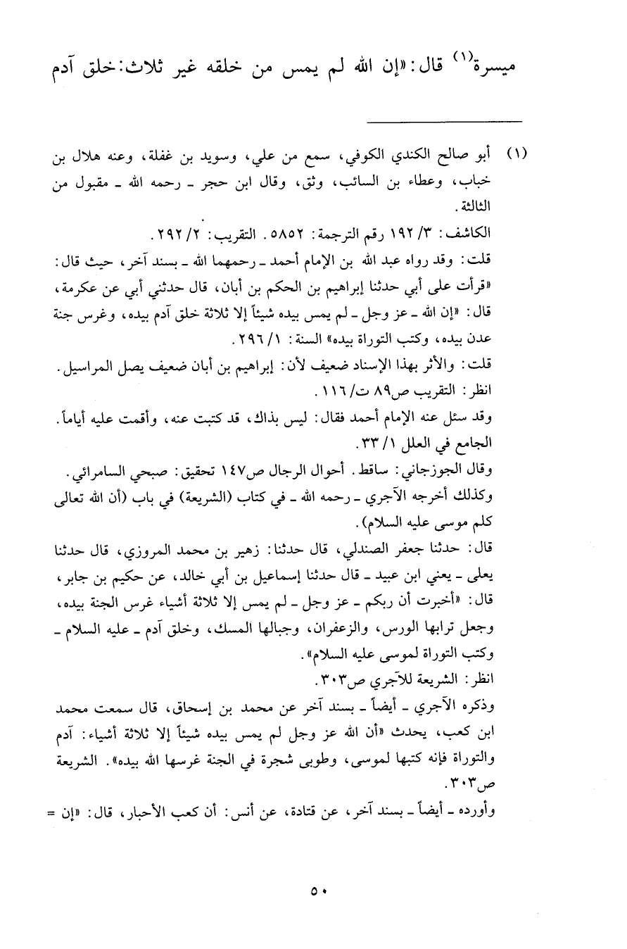 ميسرة قال إن الله لم يمس من خلقه غير ثلاث خلق آدم