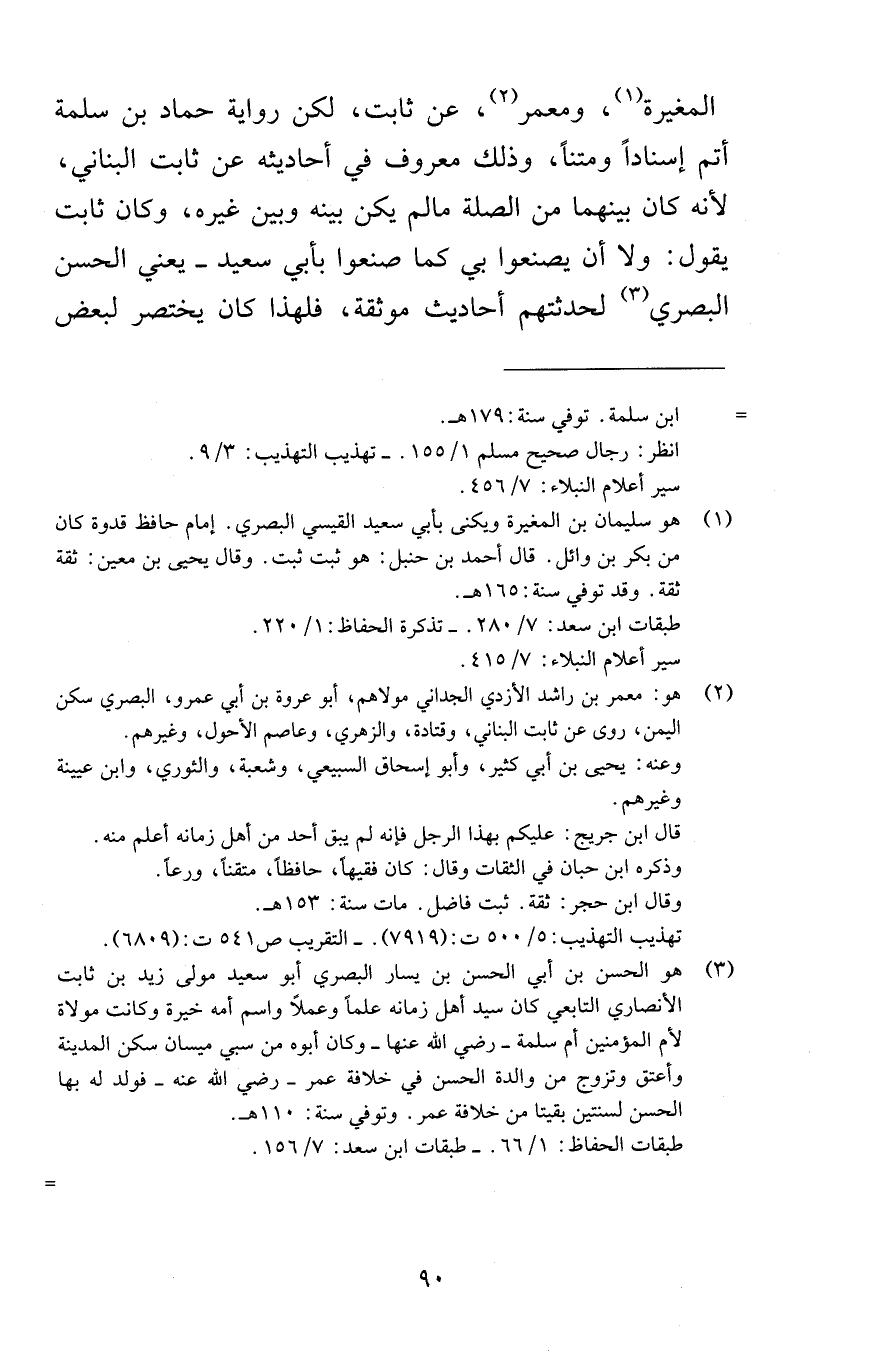 المغيرة ومعمر عن ثابت لكن رواية حماد بن سلمة أتم إسناداً ومتناً وذلك معروف في أحاديثه عن ثابت البناني لأنه كان بينهما من الصلة ما لم يكن بينه وبين غيره وكان ثابت يقول ولا أن يصنعوا بي كما صنعوا بأبي سعيد يعني الحسن البصري لحدثتهم أحاديث موثقة فلهذا كان يختصر لبعض