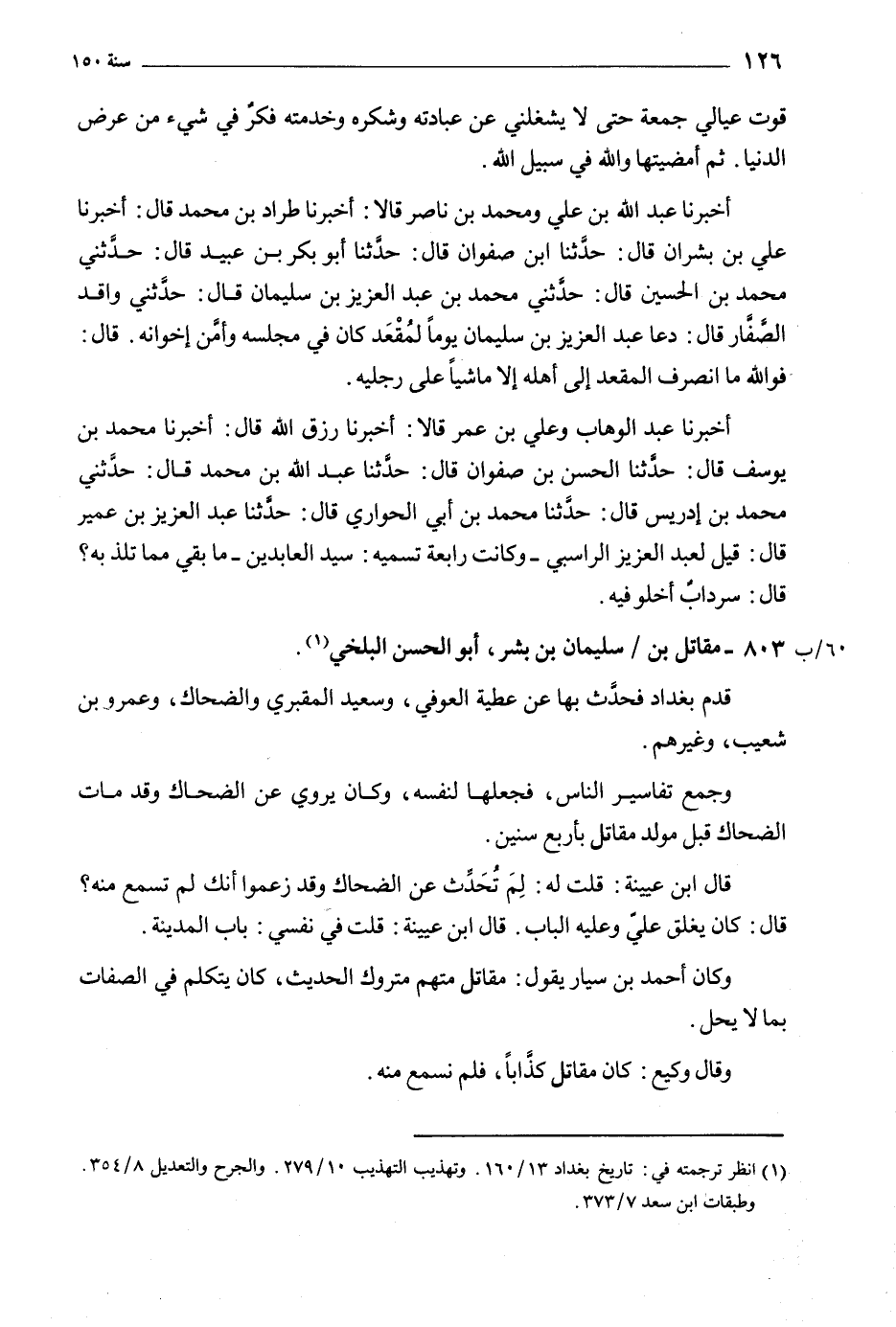 803- مقاتل بْن/ سليمان بْن بِشْر، أَبُو الْحَسَن البلخي [1] .