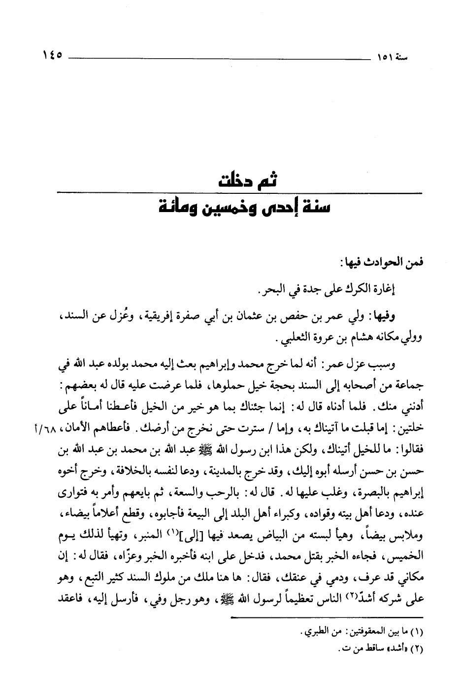 ثم دخلت سنة إحدى وخمسين ومائة