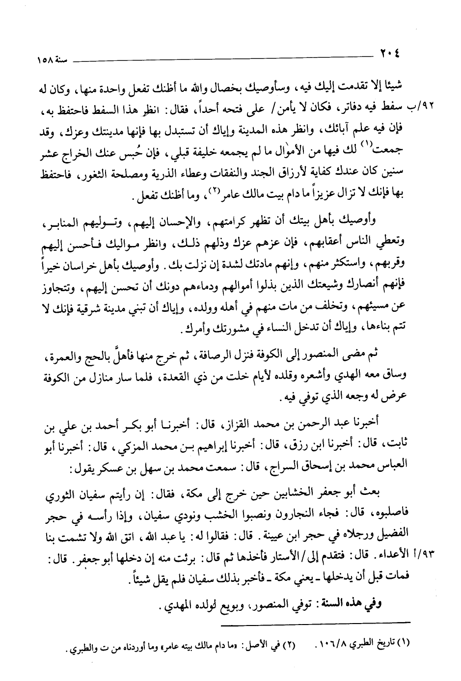 وفي هذه السنة: تُوُفِّيَ المنصور، وبويع لولده المهدي.