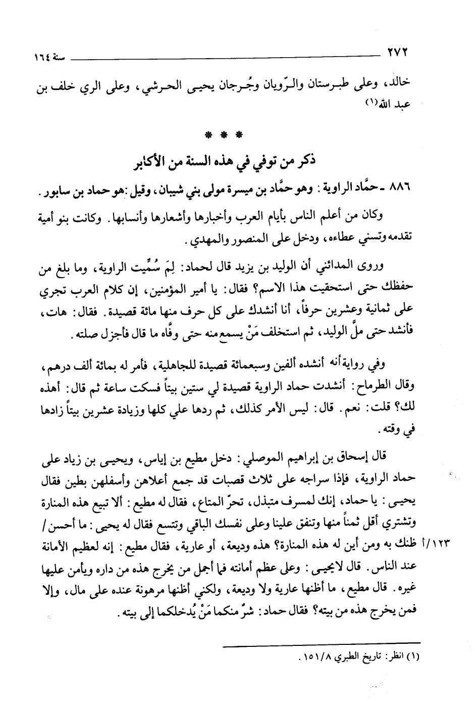 886- حماد الراوية: وَهُوَ حماد بْن ميسرة مولى بْني شيبان، وقيل: هو حماد بْن سابور.