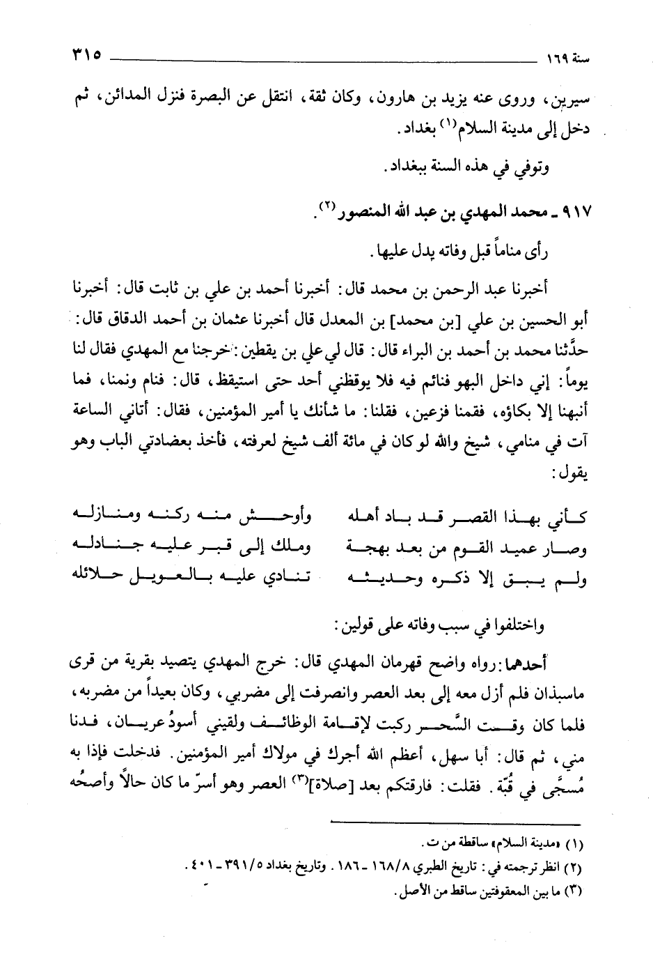 [2] انظر ترجمته في: تاريخ الطبري 8/ 168- 186. وتاريخ بغداد 5/ 391- 401.