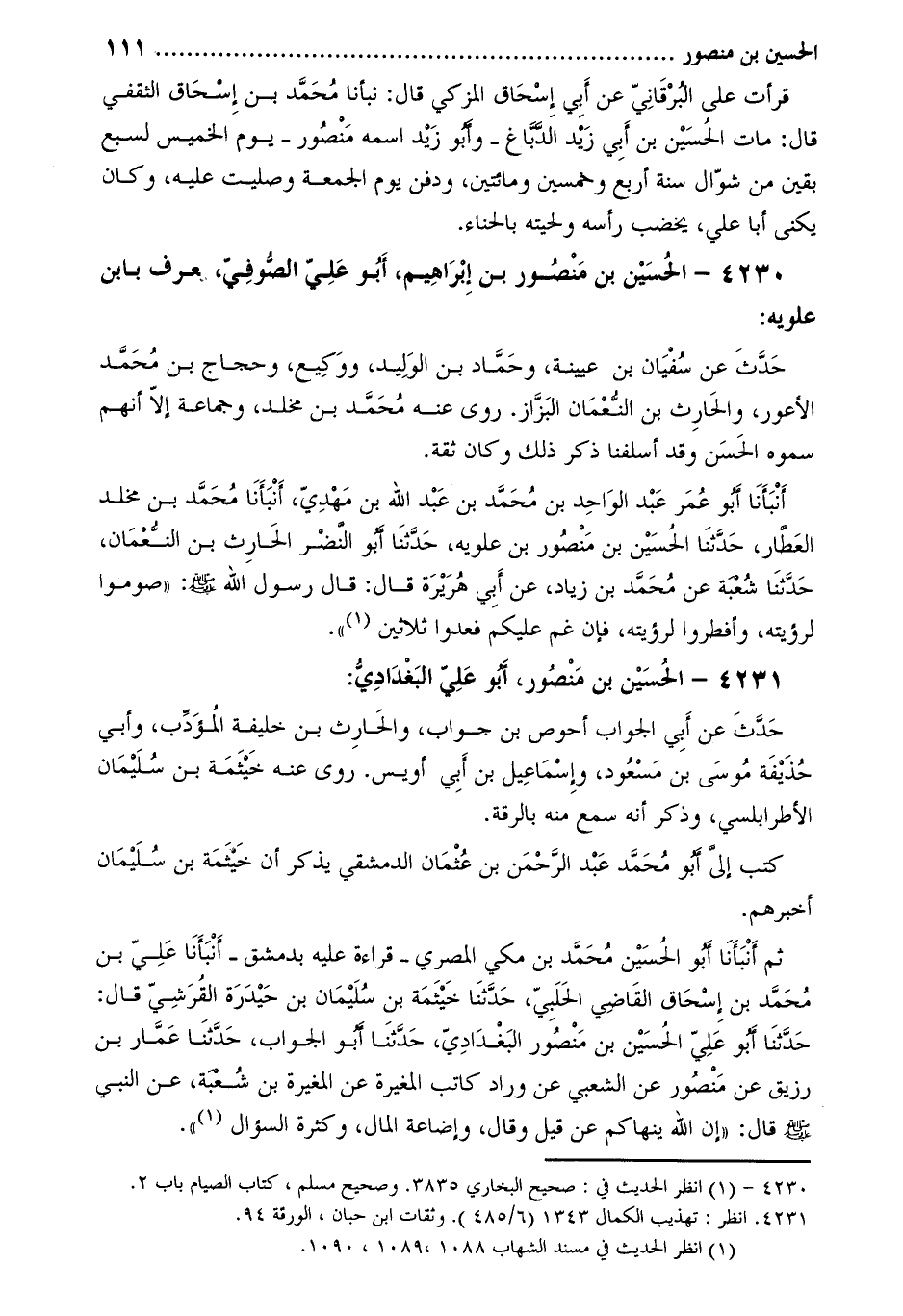 . 4231- الْحُسَيْن بن مَنْصُور، أَبُو عَلِيّ الْبَغْدَادِيّ [2] :