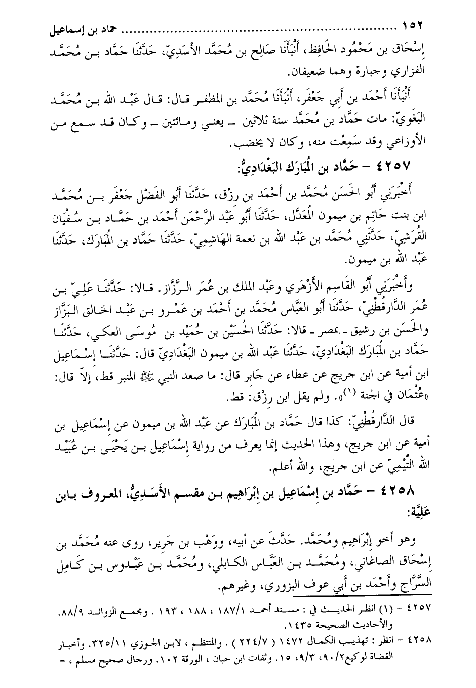 4258- حَمَّاد بْن إِسْمَاعِيل بْن إِبْرَاهِيمَ بْن مقسم الأسدي، المعروف بابن علية [2] :