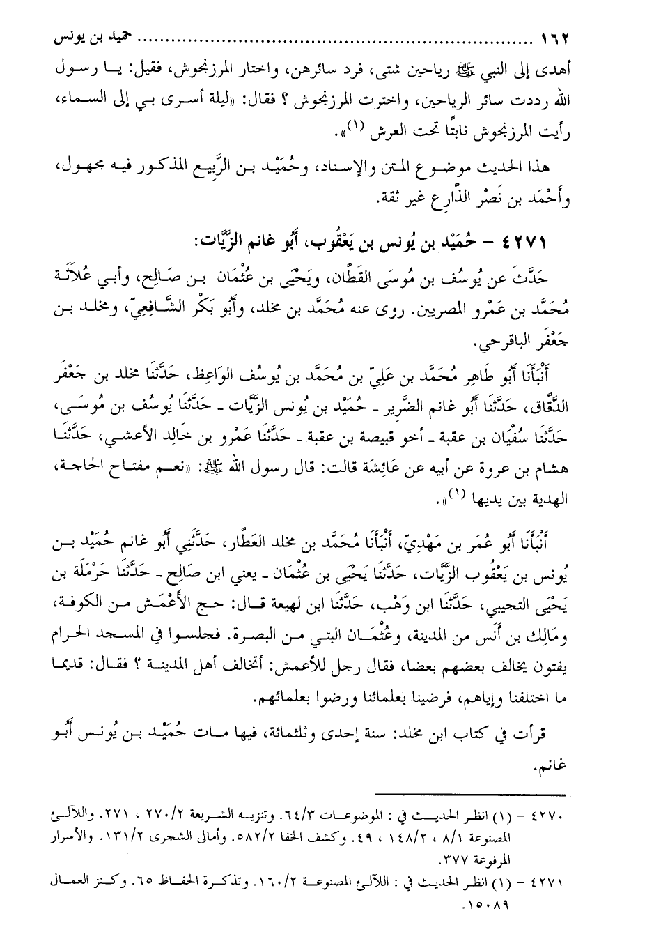 4271- حميد بْن يونس بْن يعقوب، أَبُو غانم الزيات: