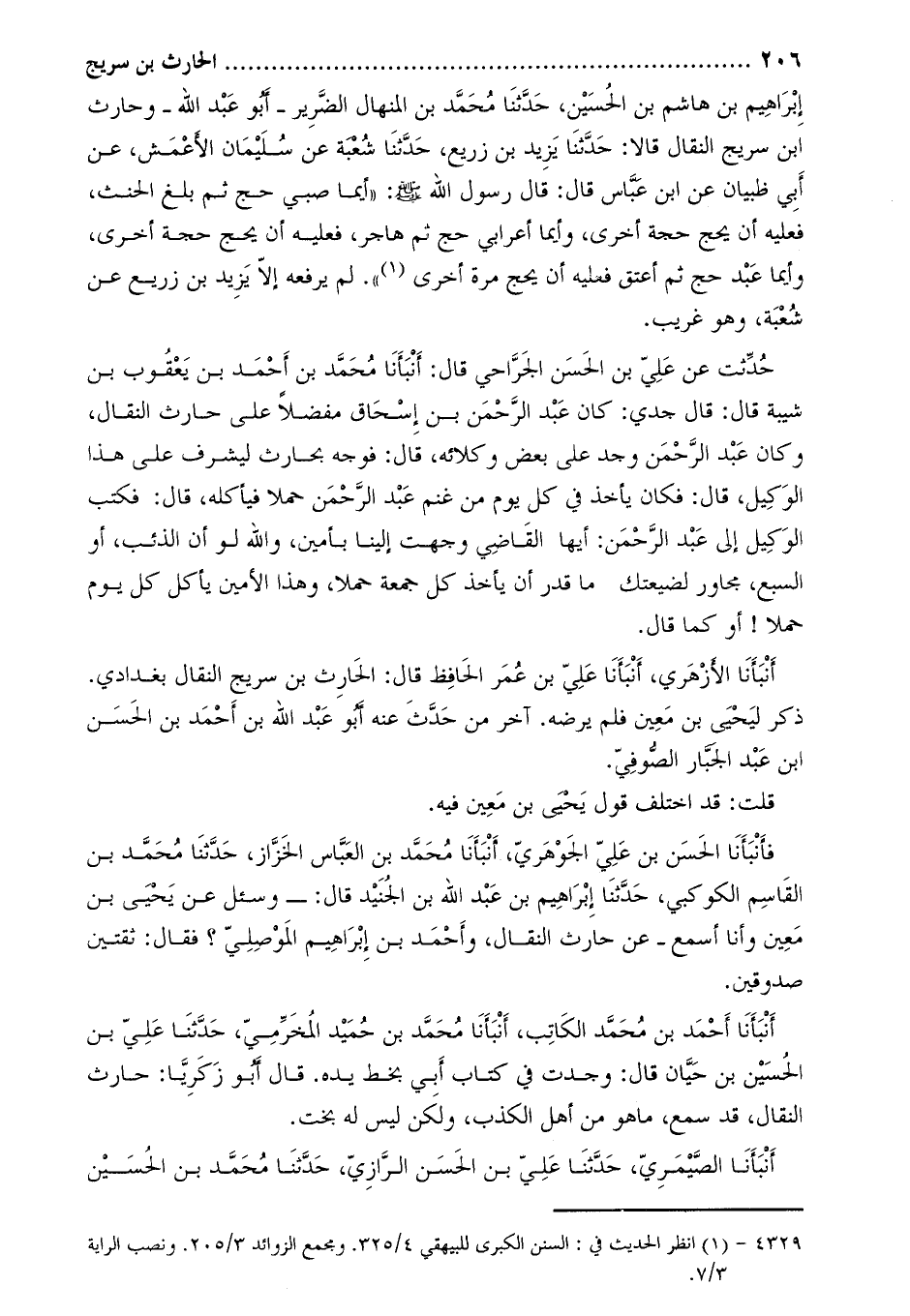 إبراهيم بن هاشم بن الحسين، حَدَّثَنَا مُحَمَّدُ بْنُ الْمِنْهَالِ الضَّرِيرُ- أَبُو عَبْدِ الله- وحارث ابن سُرَيْجٍ النَّقَّالُ قَالا: حَدَّثَنَا يَزِيدُ بْنُ زُرَيْعٍ، حَدَّثَنَا شُعْبَةُ عَنْ سُلَيْمَانَ الأَعْمَشِ، عَنْ أَبِي ظَبْيَانَ عَنِ ابْنِ عَبَّاسٍ قَالَ: قَالَ رَسُولُ اللَّهِ صَلَّى اللَّهُ عَلَيْهِ وَسَلَّمَ: «أَيَّمَا صَبِيٍّ حَجَّ ثُمَّ بَلَغَ الْحِنْثَ، فَعَلَيْهِ أَنْ يَحُجَّ حَجَّةً أُخْرَى، وَأَيُّمَا أَعْرَابِيٍّ حَجَّ ثُمَّ هَاجَرَ، فَعَلَيْهِ أَنْ يَحُجَّ حَجَّةً أُخْرَى، وَأَيُّمَا عَبْدٍ حَجَّ ثُمَّ أُعْتِقَ فَعَلَيْهِ أَنْ يَحُجَّ مرة أُخْرَى [1] »