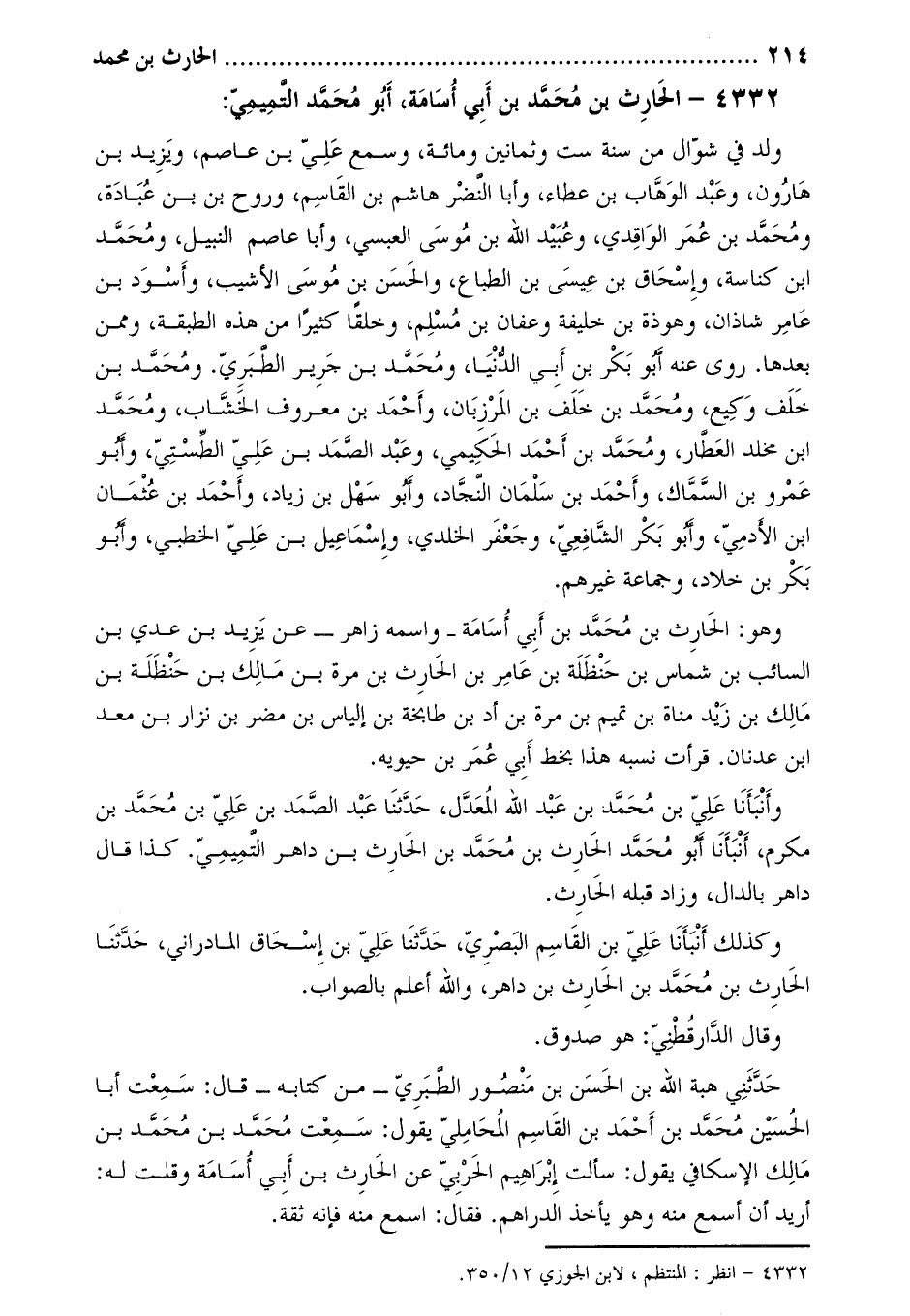 4332- الحارث بْن مُحَمَّد بْن أَبِي أسامة، أَبُو مُحَمَّد التميمي [1] :
