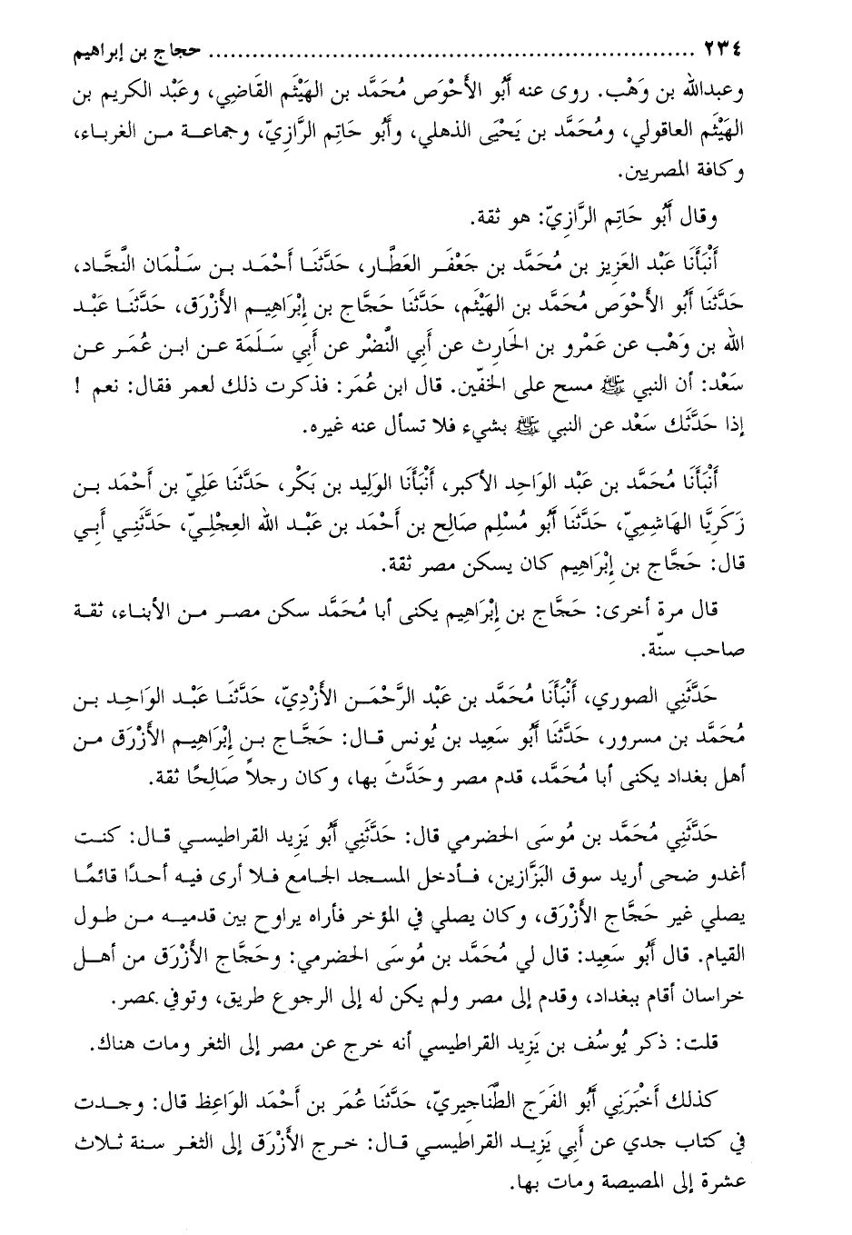 قَالَ مرة أخرى: حجاج بْن إِبْرَاهِيمَ يكنى أبا مُحَمَّد سكن مصر من الأبناء، ثقة صاحب سنة.