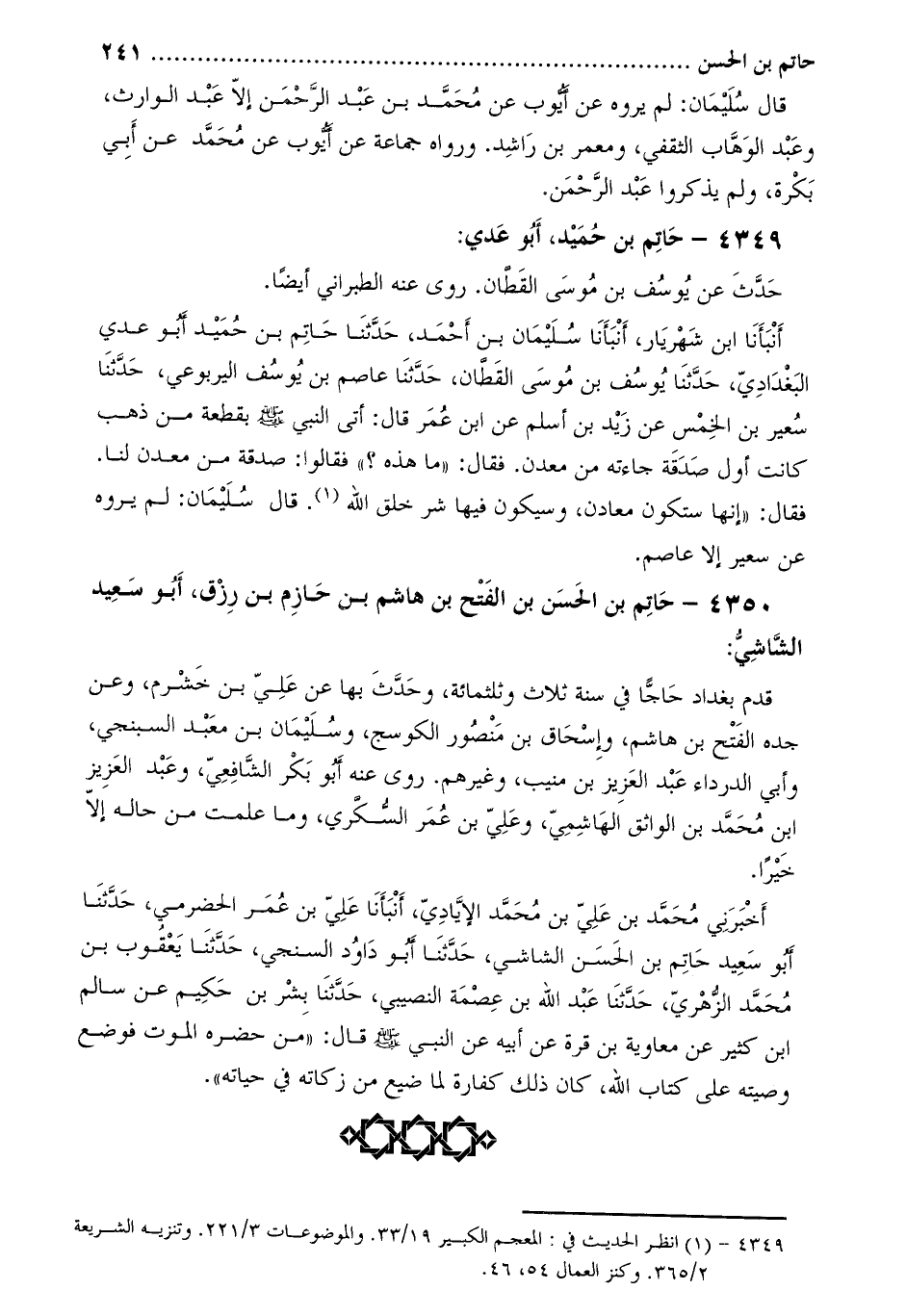 4350- حاتم بْن الْحَسَن بْن الفتح بْن هاشم بْن حازم بْن رزق، أَبُو سعيد الشاشي:
