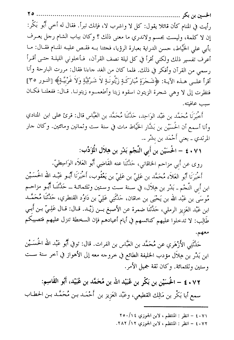 [1] 4071- انظر: المنتظم، لابن الجوزي 14/250.