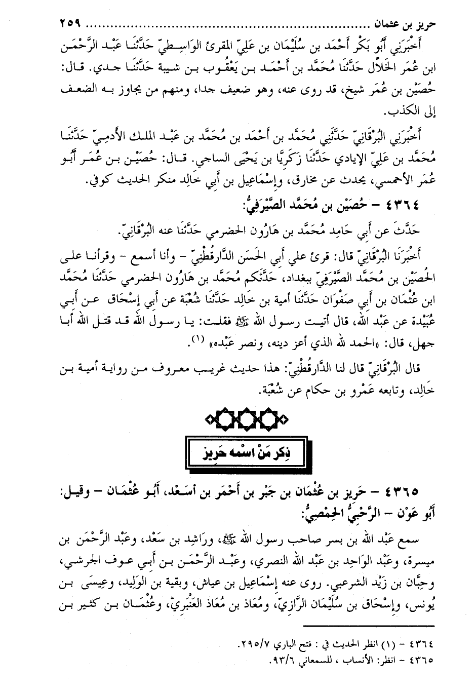 4365- حريز بْن عُثْمَان بْن جبر بْن أحمر بْن أسعد، أَبُو عُثْمَان- وَقيل: أَبُو عون- الرحبي الحمصي [2] :