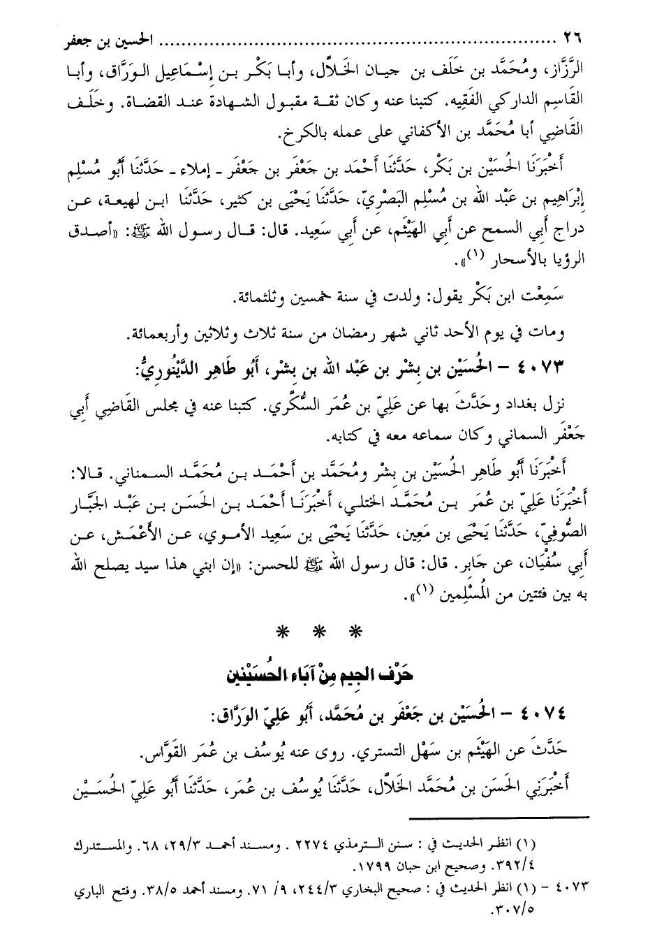 4074- الْحُسَيْن بن جَعْفَر بن مُحَمَّد، أَبُو عَلِيّ الْوَرَّاق: