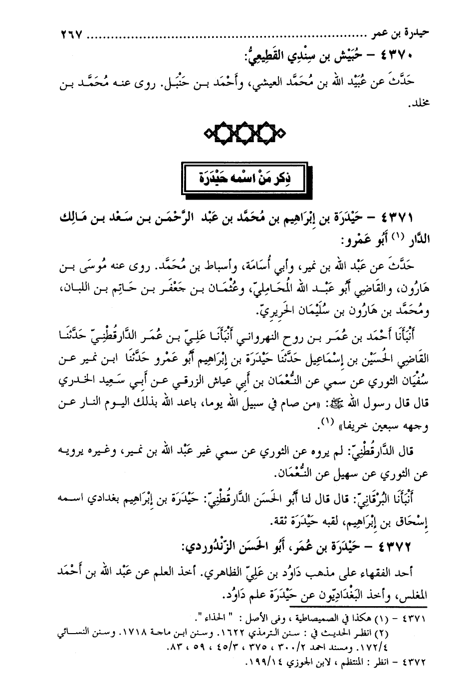 4371- حيدرة بْن إِبْرَاهِيمَ بْن مُحَمَّد بْن عَبْد الرَّحْمَنِ بْن سَعْد بْن مَالِك الدار [1] أَبُو عَمْرو: