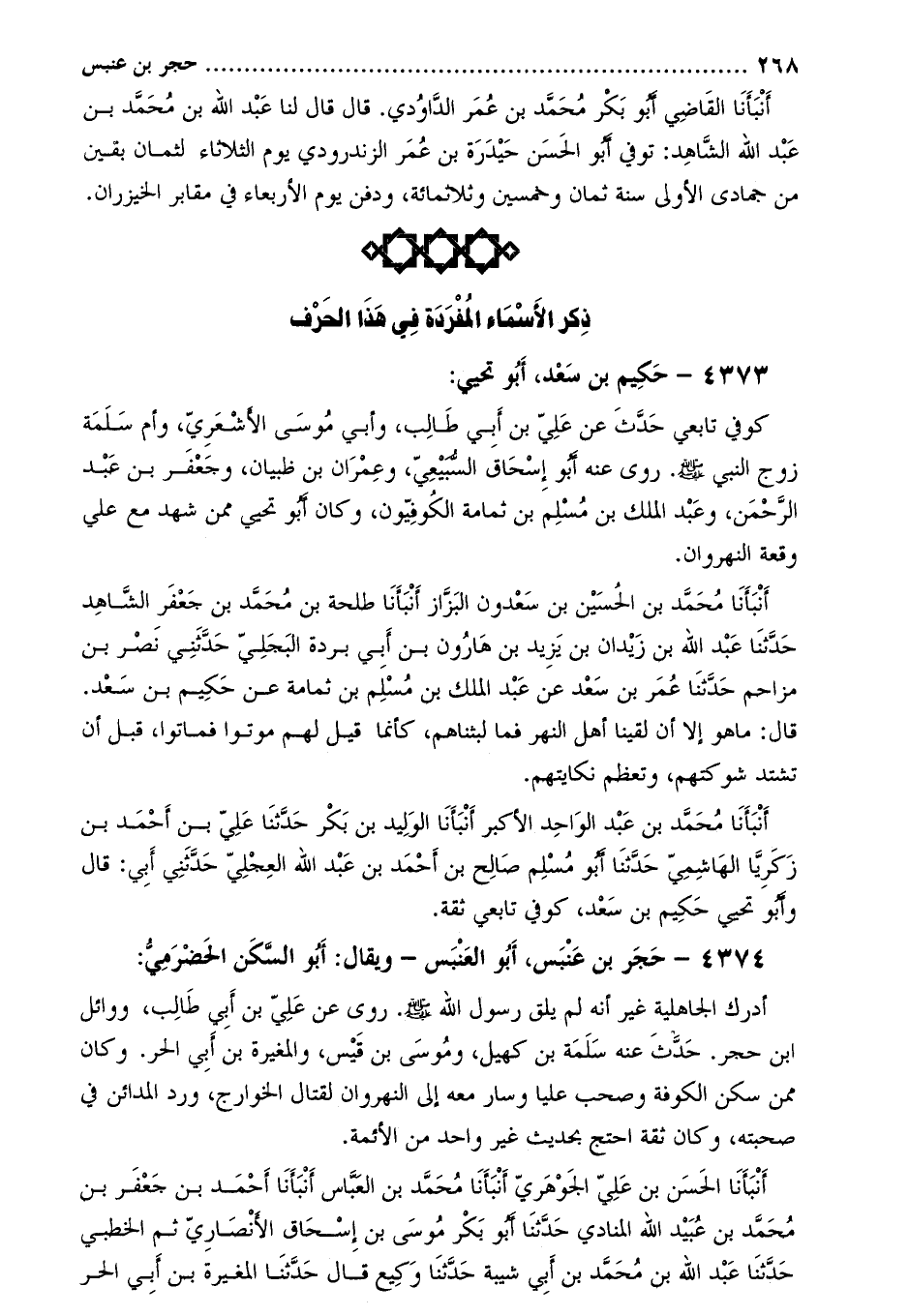 4374- حجر بْن عنبس، أَبُو العنبس- وَيقال: أَبُو السكن الحضرمي: