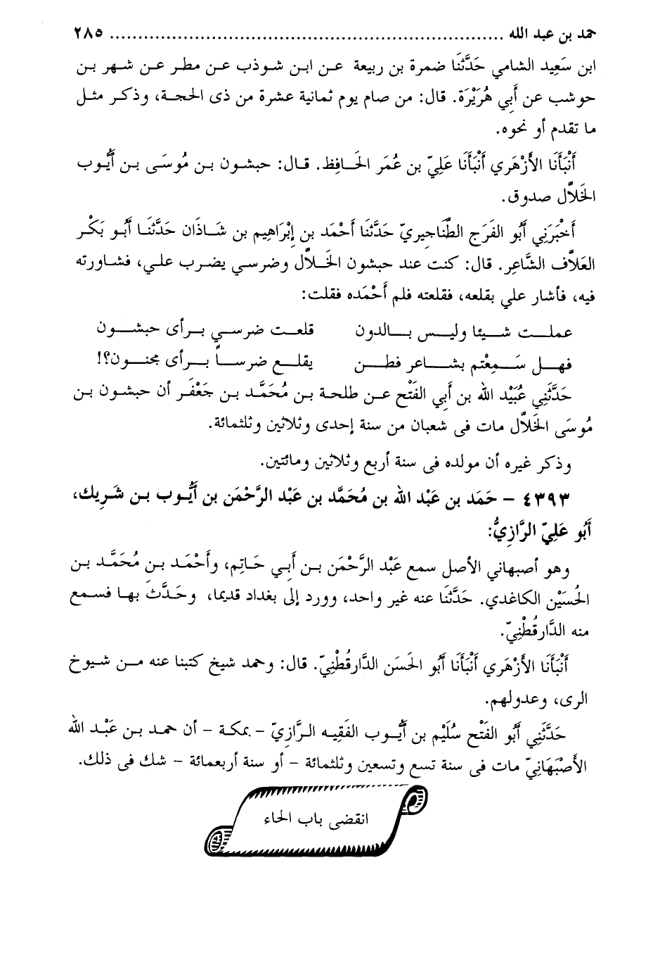 4393- حمد بْن عَبْد اللَّهِ بْن مُحَمَّد بْن عَبْد الرَّحْمَنِ بْن أيوب بْن شريك، أَبُو علي الرازي: