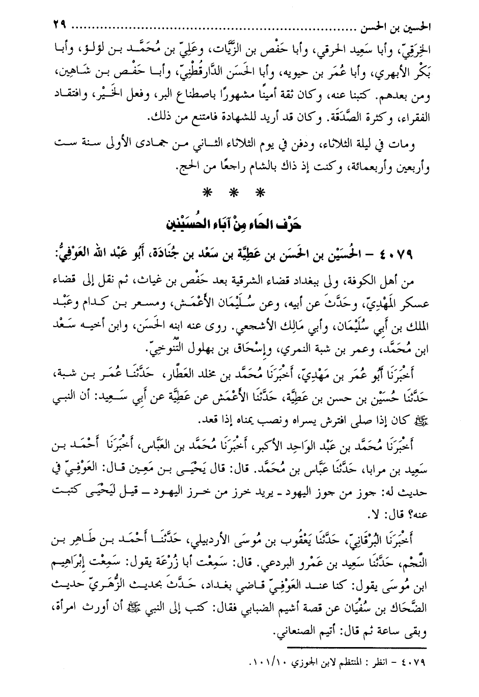 [1] 4079- انظر: المنتظم لابن الجوزي 10/101.