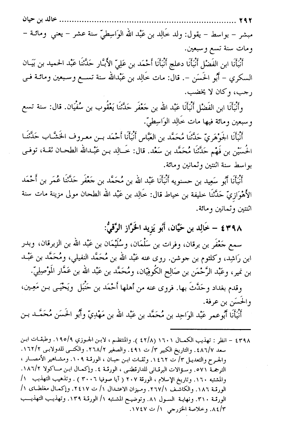 4398- خَالِد بْن حيان، أَبُو يزيد الخراز الرَّقِّيّ [1] :