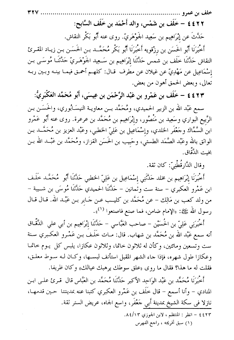 4423- خلف بْن عَمْرو بْن عَبْد الرَّحْمَنِ بْن عيسى، أَبُو مُحَمَّد العكبري [1] :