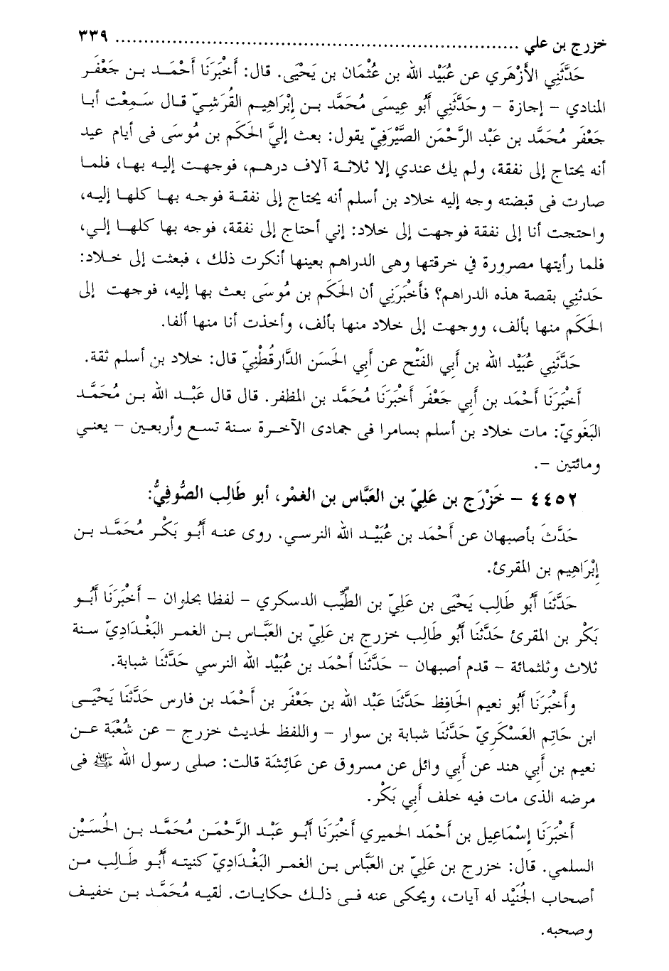 4452- خزرج بْن عَلِيّ بْن الْعَبَّاس بْن الغمر، أَبُو طَالِب الصوفي: