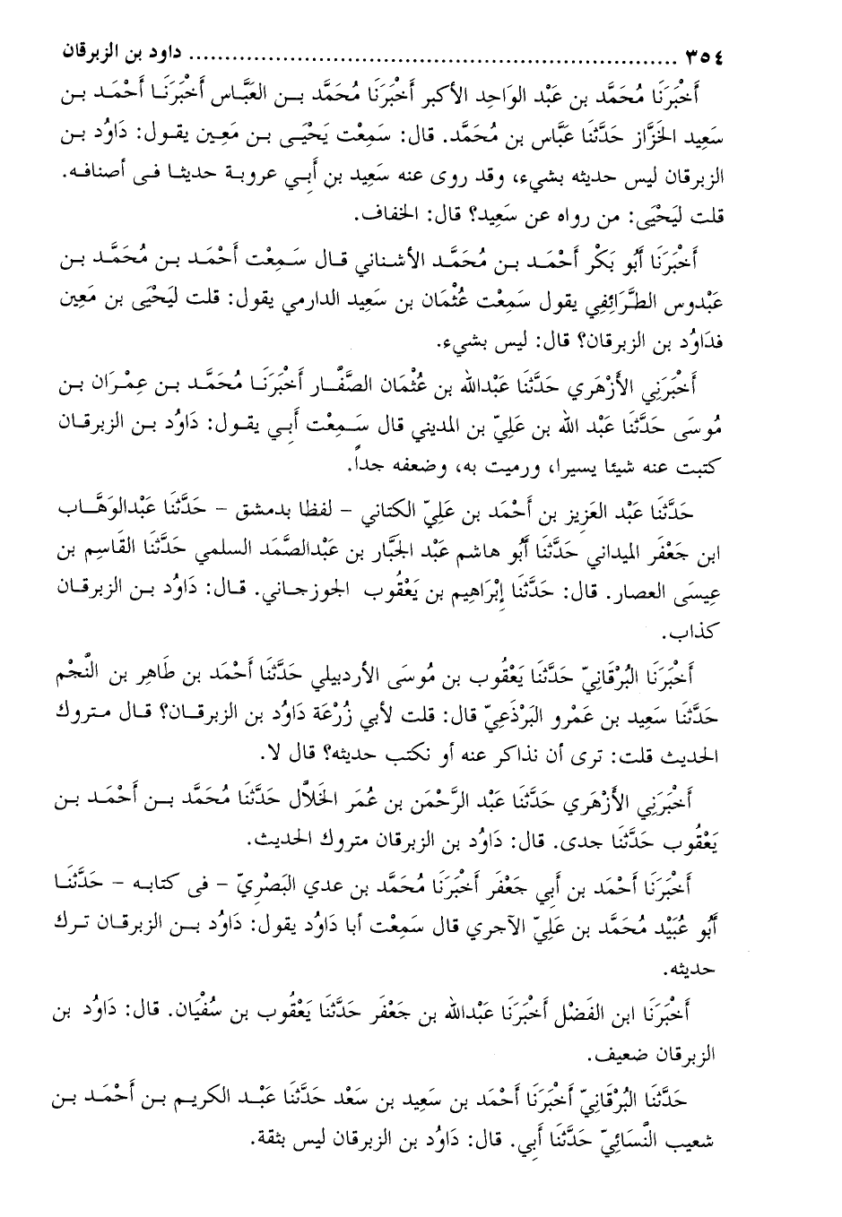 أخبرني الأزهري حدّثنا عَبْد الرَّحْمَن بْن عُمَر الخلال حَدَّثَنَا مُحَمَّد بن أحمد بن يعقوب حَدَّثَنَا جدي. قَالَ: داود بْن الزبرقان متروك الحديث.