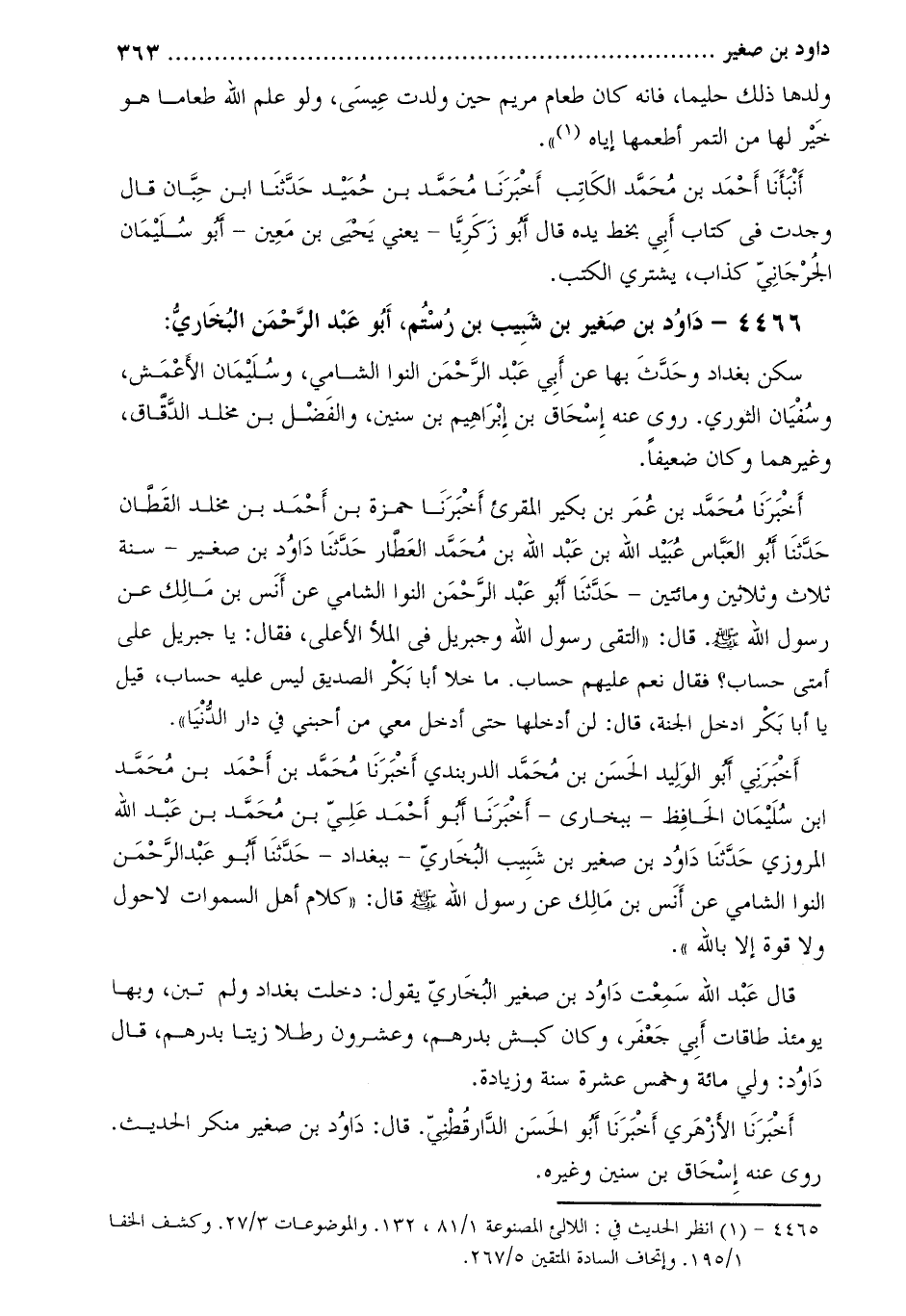 4466- داود بْن صغير بْن شبيب بْن رستم، أَبُو عَبْد الرَّحْمَنِ الْبُخَارِيّ: