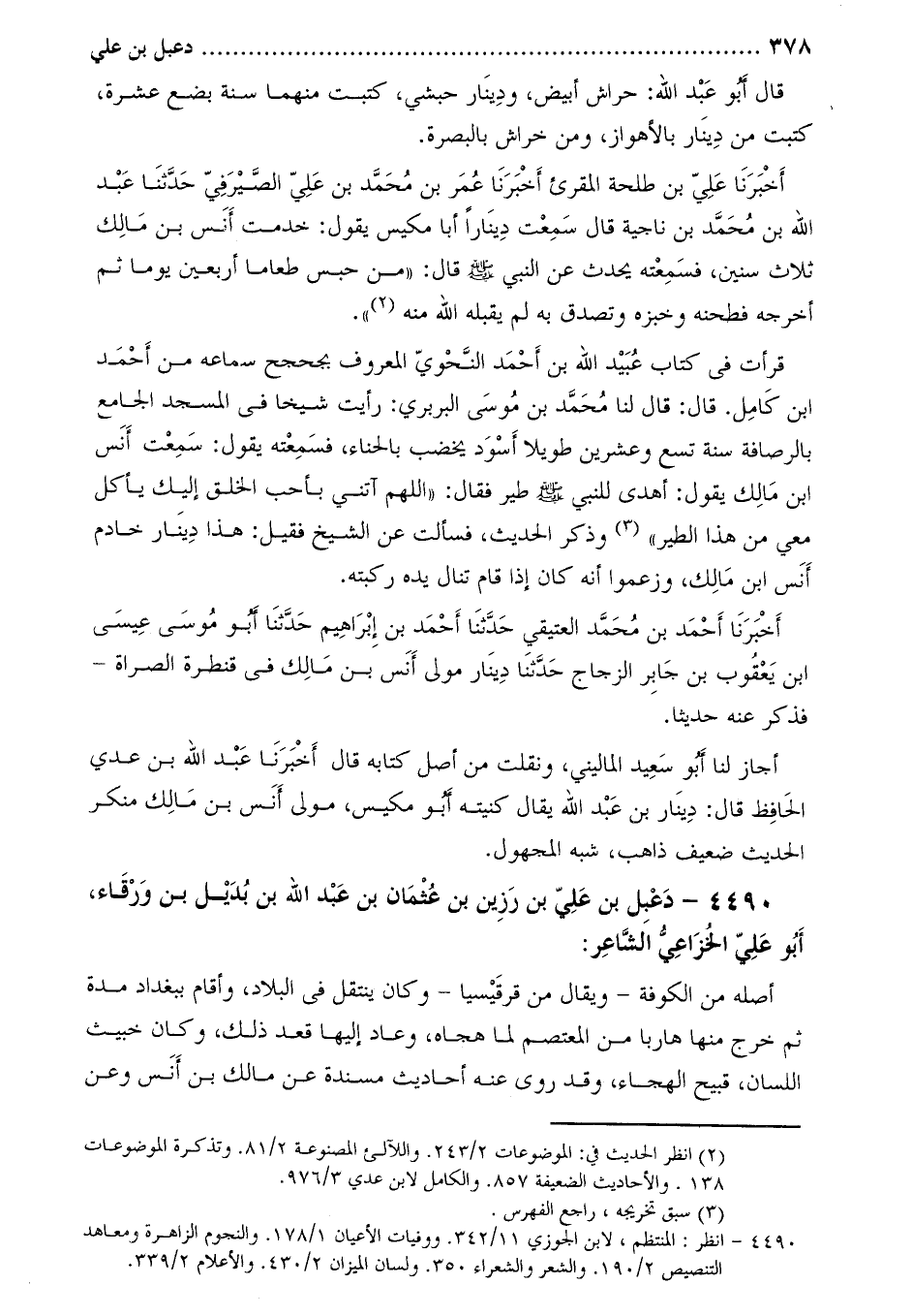 4490- دعبل بْن عَلِيّ بْن رزين بْن عُثْمَان بْن عَبْد اللَّهِ بْن بديل بْن وَرقاء، أَبُو علي الخزاعي الشاعر [3] :