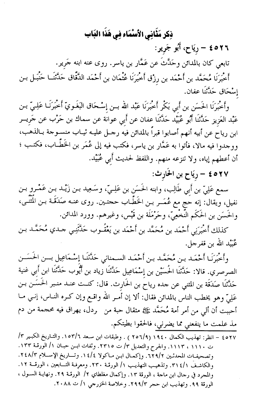 [1] 4527- انظر: تهذيب الكمال 1940 (9/256) . وطبقات ابن سعد 6/153. والتاريخ الكبير 3/ت 1110، 1113. والجرح والتعديل 3/ت 2315. وثقات ابن حبان 1/الورقة 133.