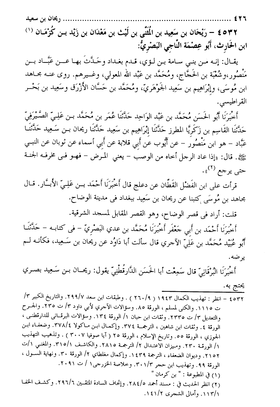 4532-[1] ريحان بْن سَعِيد بْن المثنى بْن ليث بن معدان بن زيد بن كزمان [2] ابن الحارث، أبو عصمة النّاجي البصريّ:
